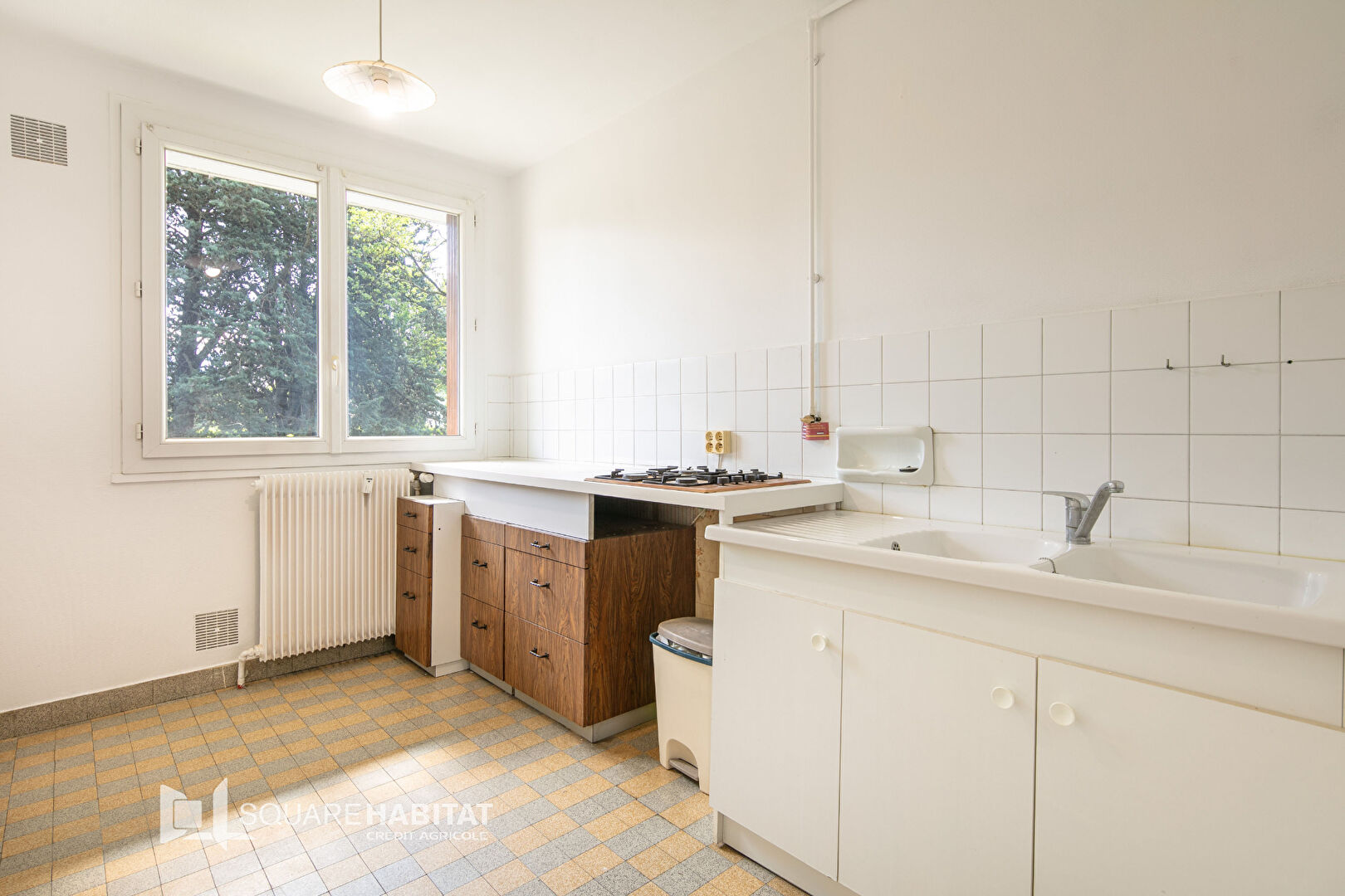 Dans une copropriété des années 60, idéalement située et sécurisée par un interphone, un appartement T3 + cuisine de 53.88 m², traversant.