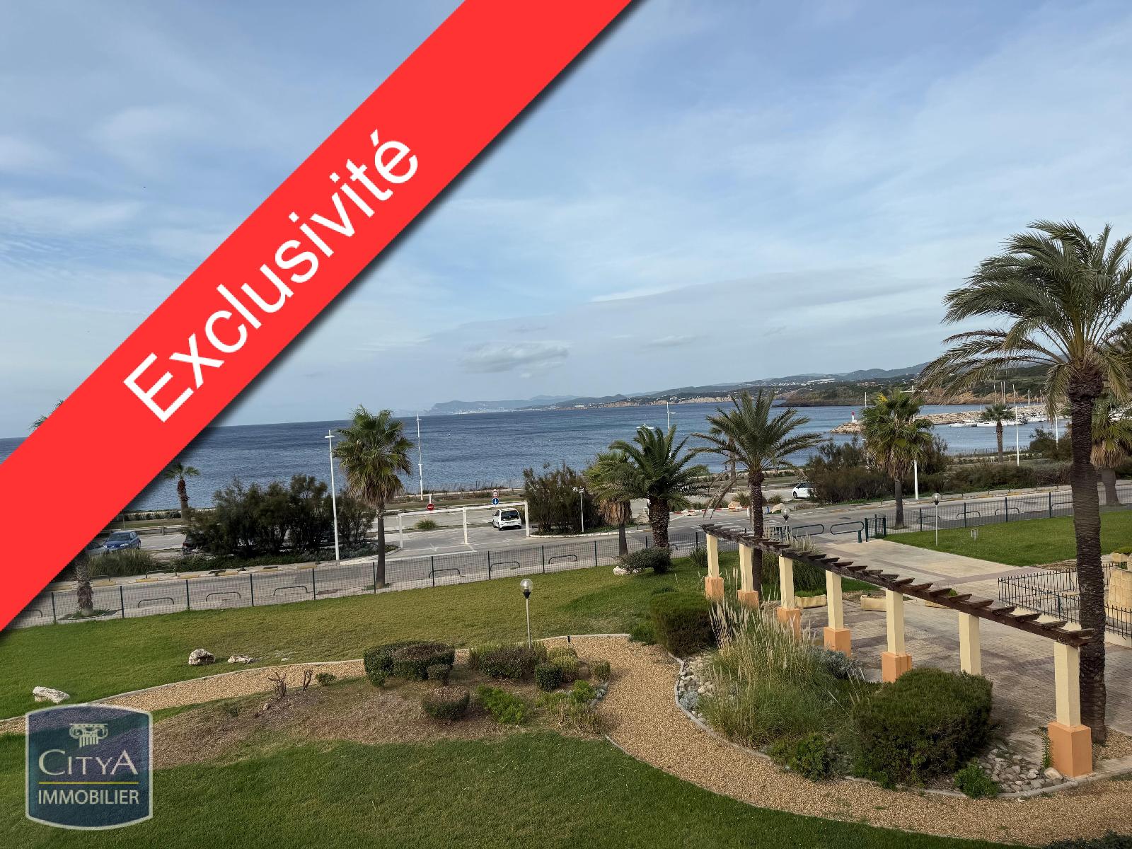 LA COUDOULIERE VUE MER A 2 min de la plage et des commerces : Appartement de type T2 d'env.40 hab. dont 7m2 de terrasse fermée pleine vue mer au 2ème étage sans ascenseur : Une entrée avec coin lits superposés, un séjour avec placard, cuisine US équipée, ...