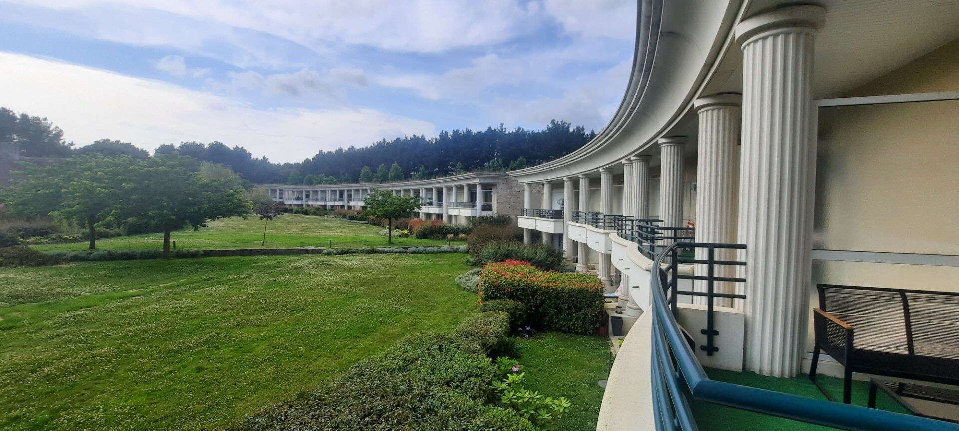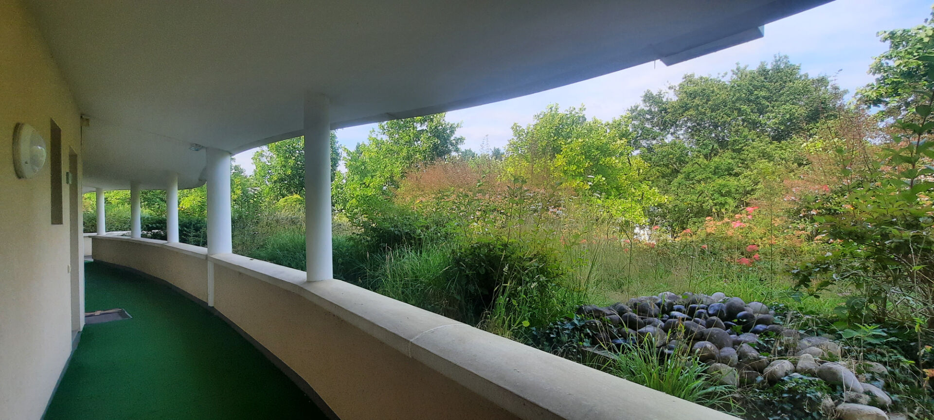 Une terrasse exposée sud avec un cellier dans un jardin...
