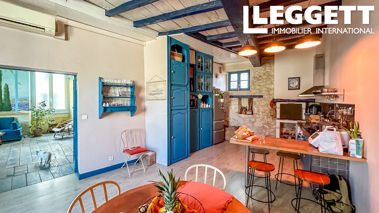 - Au 1er étage : 1 chambres, 1 salle d'eau, 1 salon, 1 cuisine équipée ouverte sur 1 salle à manger.