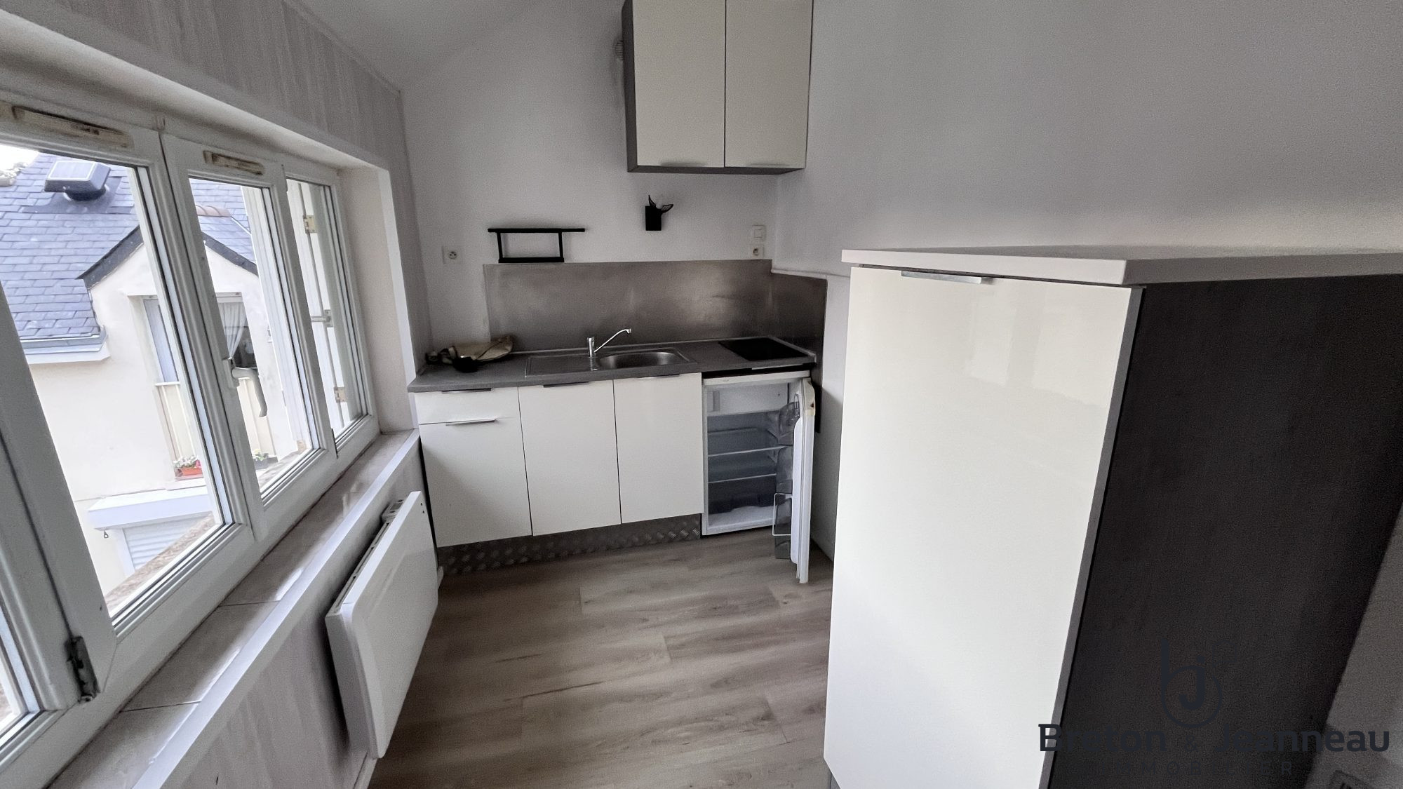 SAINT BERTHEVIN en hyper centre : au 1er étage d'une petite copropriété, nous vous proposons ce studio comprenant une cuisine séparée, une salle d'eau avec wc, un séjour et une cave.