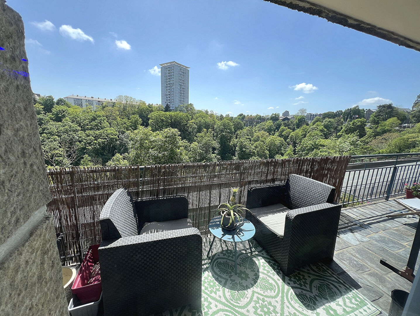 A VENDRE, SAINT BRIEUC, 4mn centre, dans une résidence en pierre de 1965 de bon standing, bel appartement T4 de 137m2 avec 30m2 de terrasse au sud, vue dégagée sur vallée, comprenant : hall d'entrée, salon/séjour avec cheminée et cuisine ouverte aménagée ...