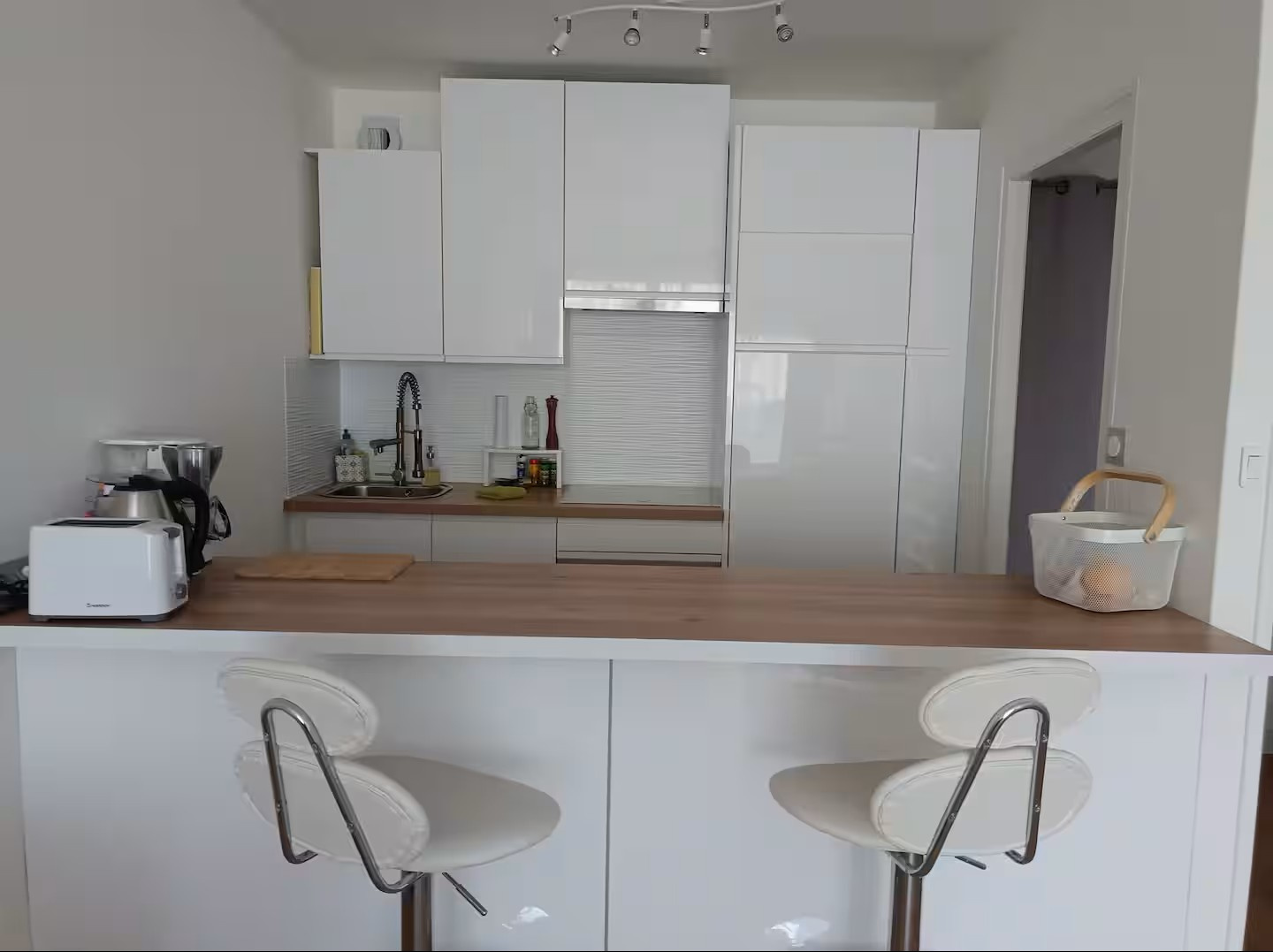 Il offre une belle pièce de vie lumineuse avec cuisine neuve, moderne et entièrement équipée, deux chambres confortables, une salle de bains et des WC ...