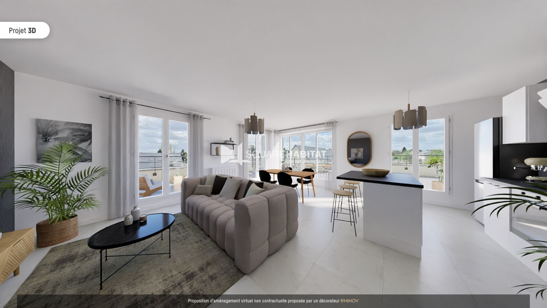 Très bel appartement T3 de 86.45 m2 loi Carrez (104 m2 au sol), jouissant d'une grande terrasse, à Saint-Cyr-sur-Loire !