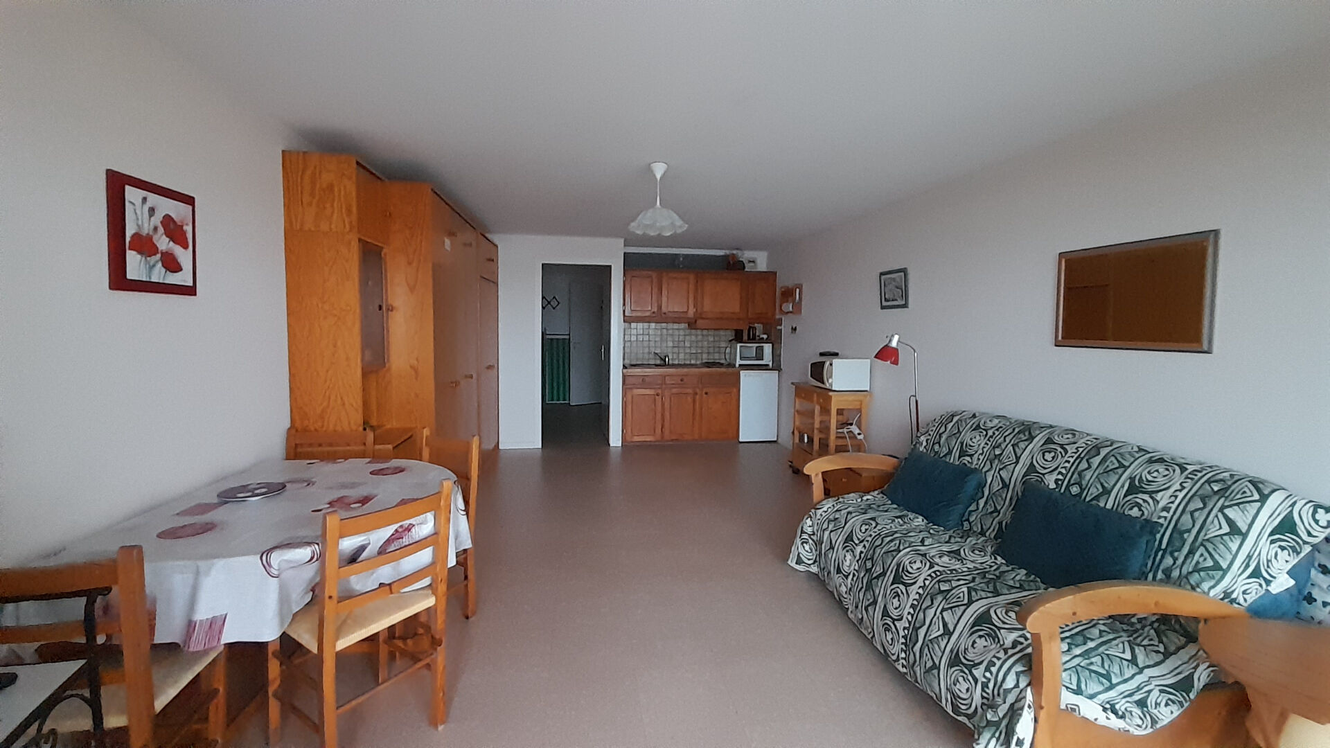- Salon séjour avec une cuisine entièrement aménagée/ équipée