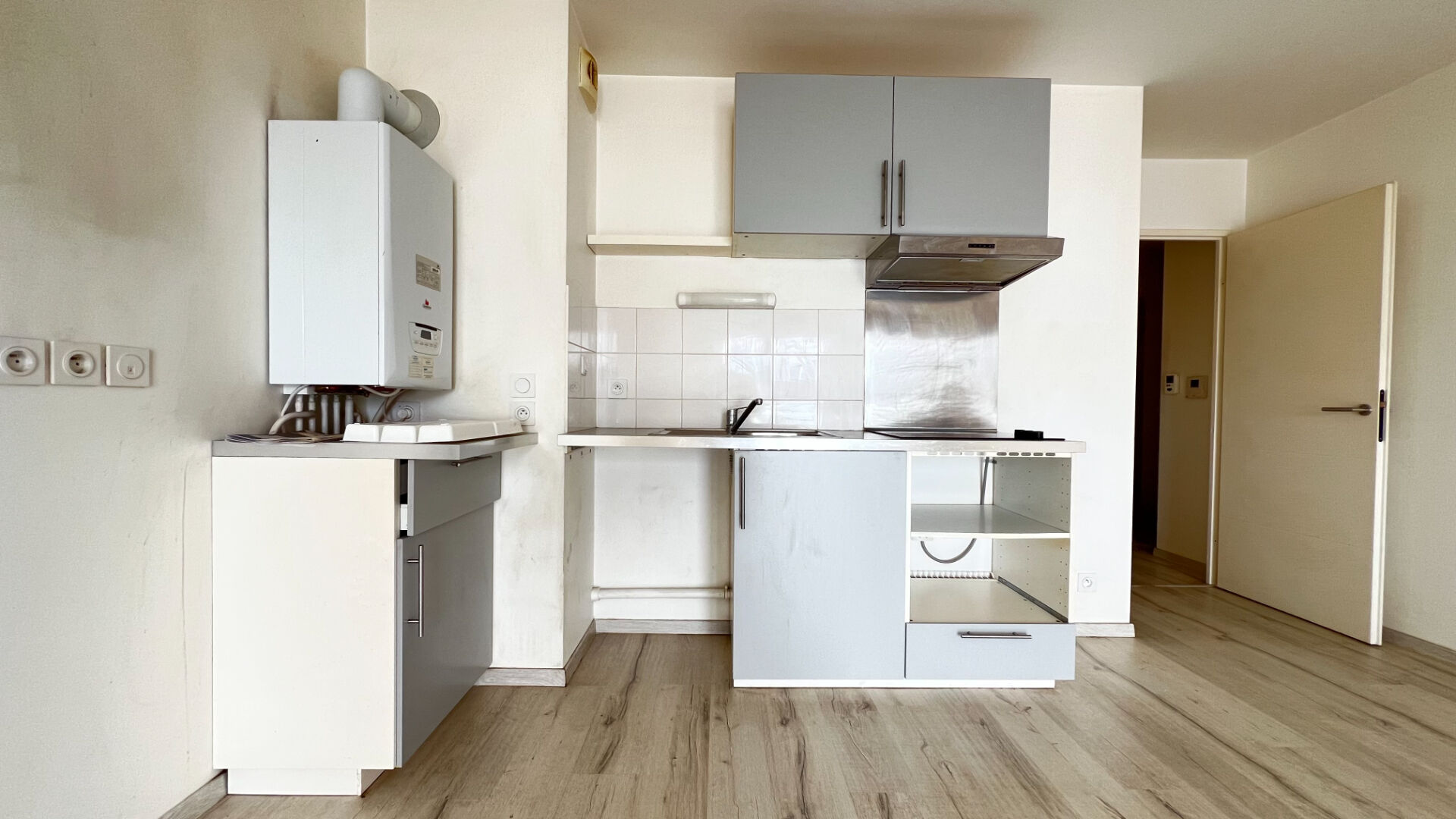 Entrée, séjour avec cuisine ouverte pour une surface de 29m², 2 chambres, salle d'eau et wc séparés.