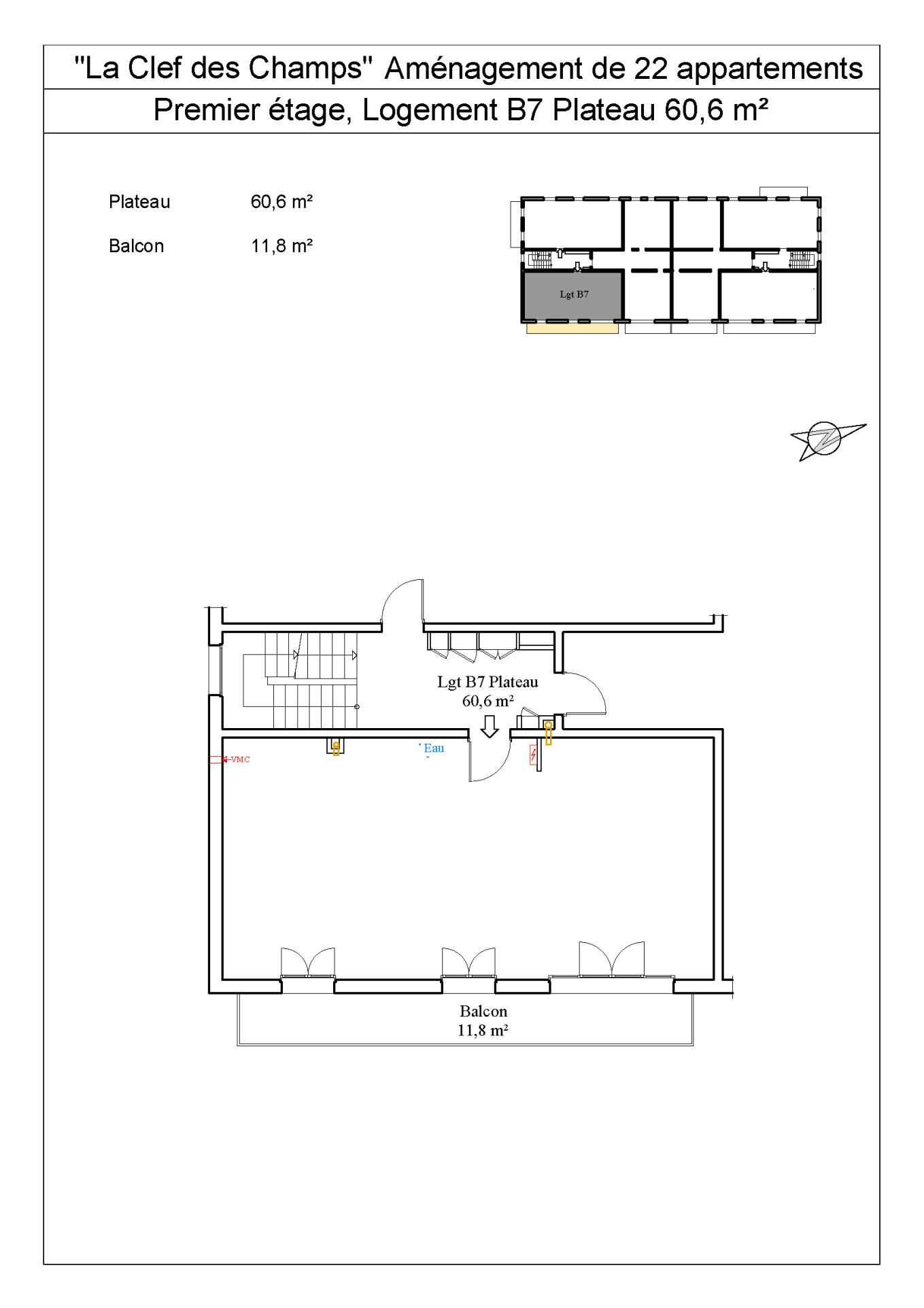 Dans un ensemble immobilier de 22 logements/plateaux sur les hauteurs de Saint-Jeoire, Plateau type T3 au 1er étage d'une surface de 77.20 m2 + Balcon de 5.80 m2 et une place de parking.