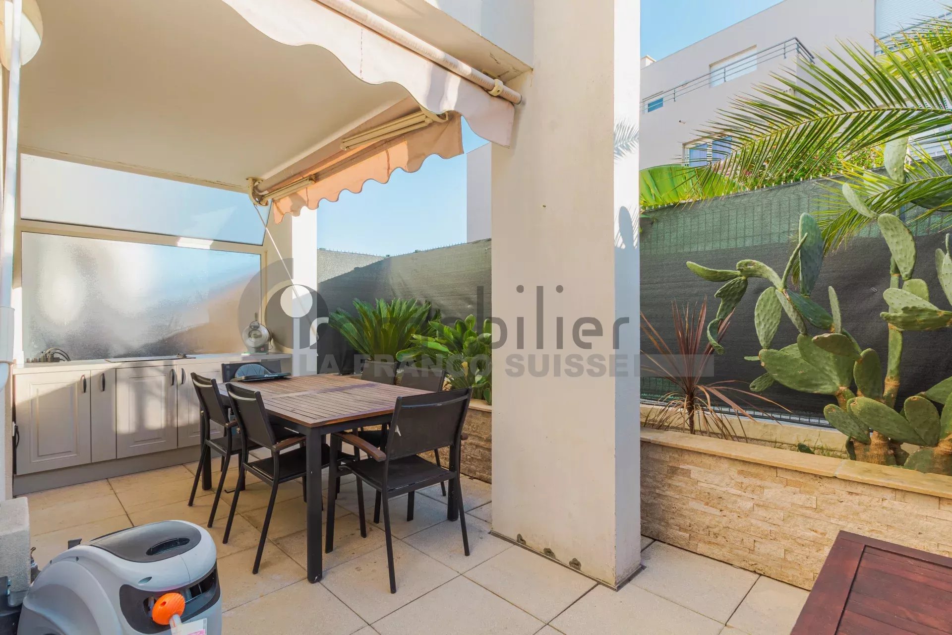 Saint-Laurent-du-Var, idéalement situé dans un dans un quartier calme et résidentiel, à proximité immédiate des commerces, de la gare, de Tzanck, et à quelques minutes à pied de la mer, du port et de Cap 3000.
