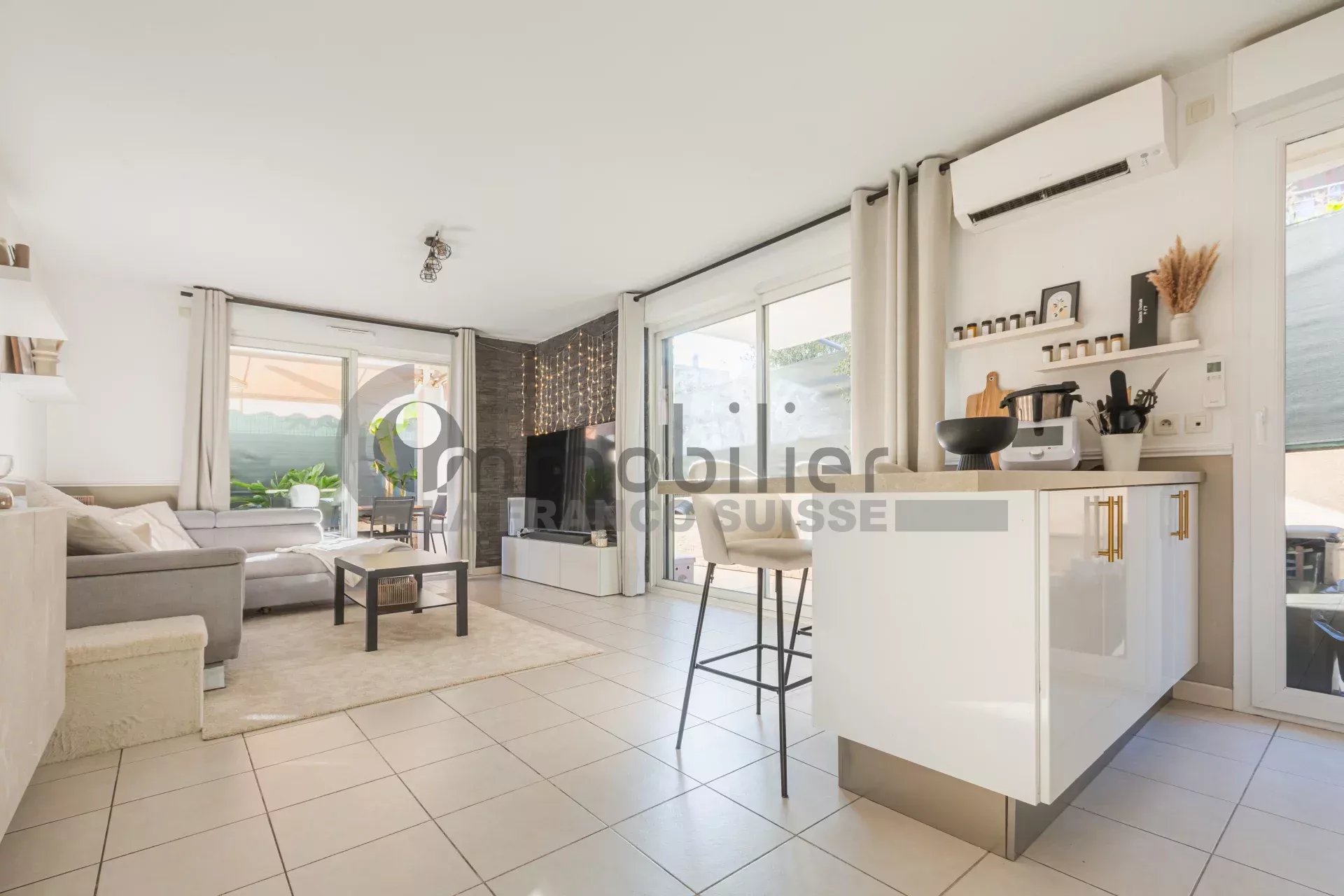 Belles prestations pour cet appartement en rez de jardin dans un immeuble de construction trés recente . GARAGE double - climatisation - proche toutes commodités -terrasse et jardinet trés agreable exposition EST - grand calme - quartier recherché à ST LAURENT...