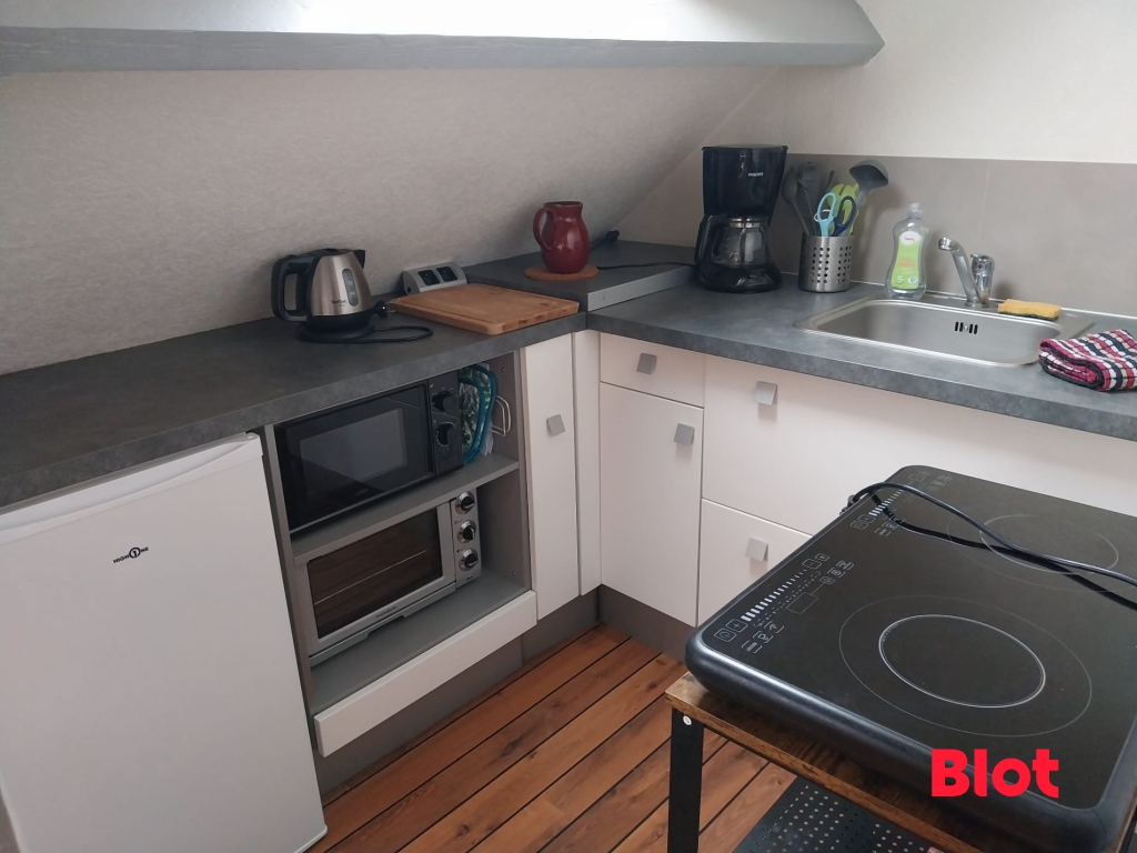 L'appartement comprend un coin nuit avec salle d'eau et wc et une cuisine aménagée e...