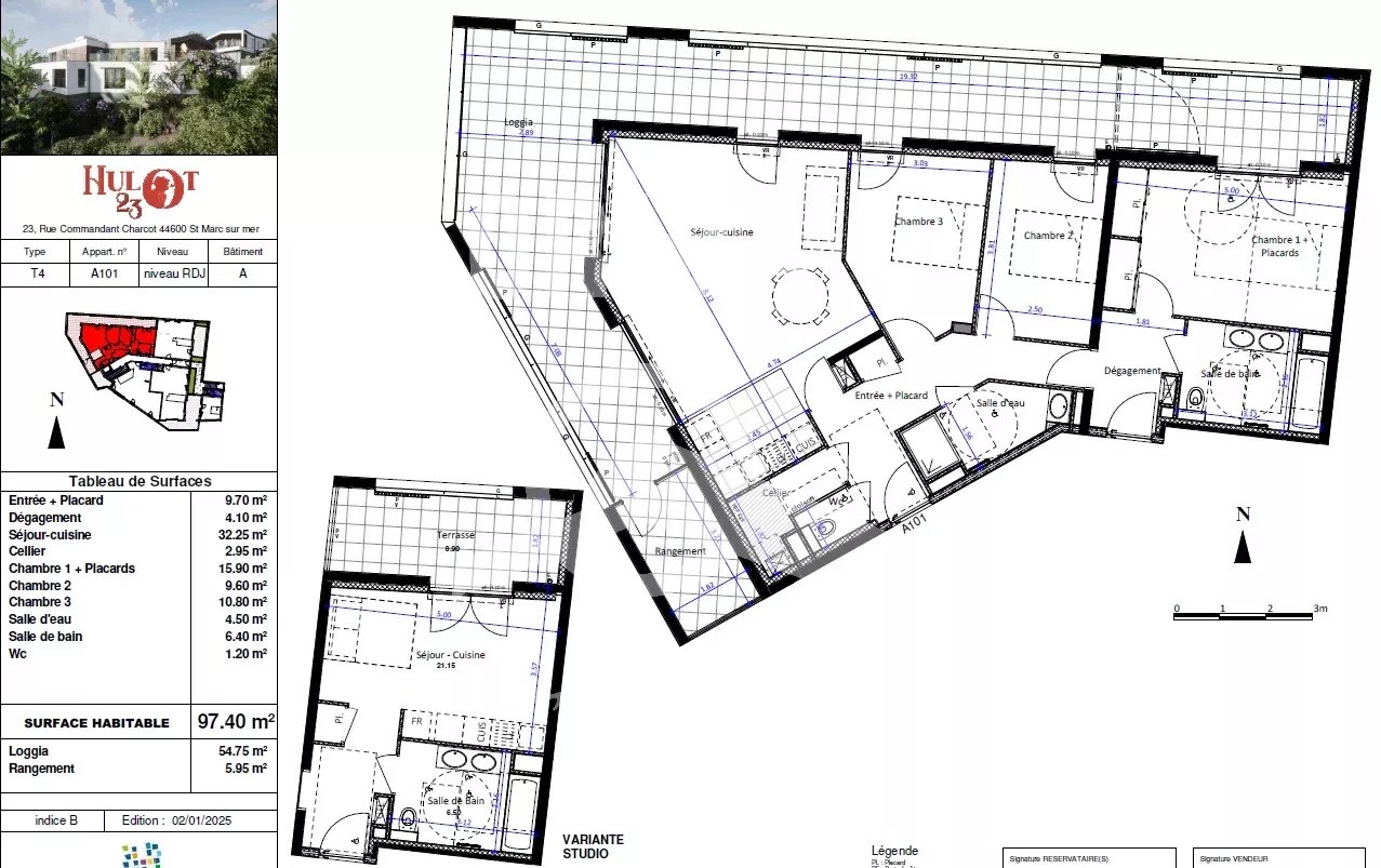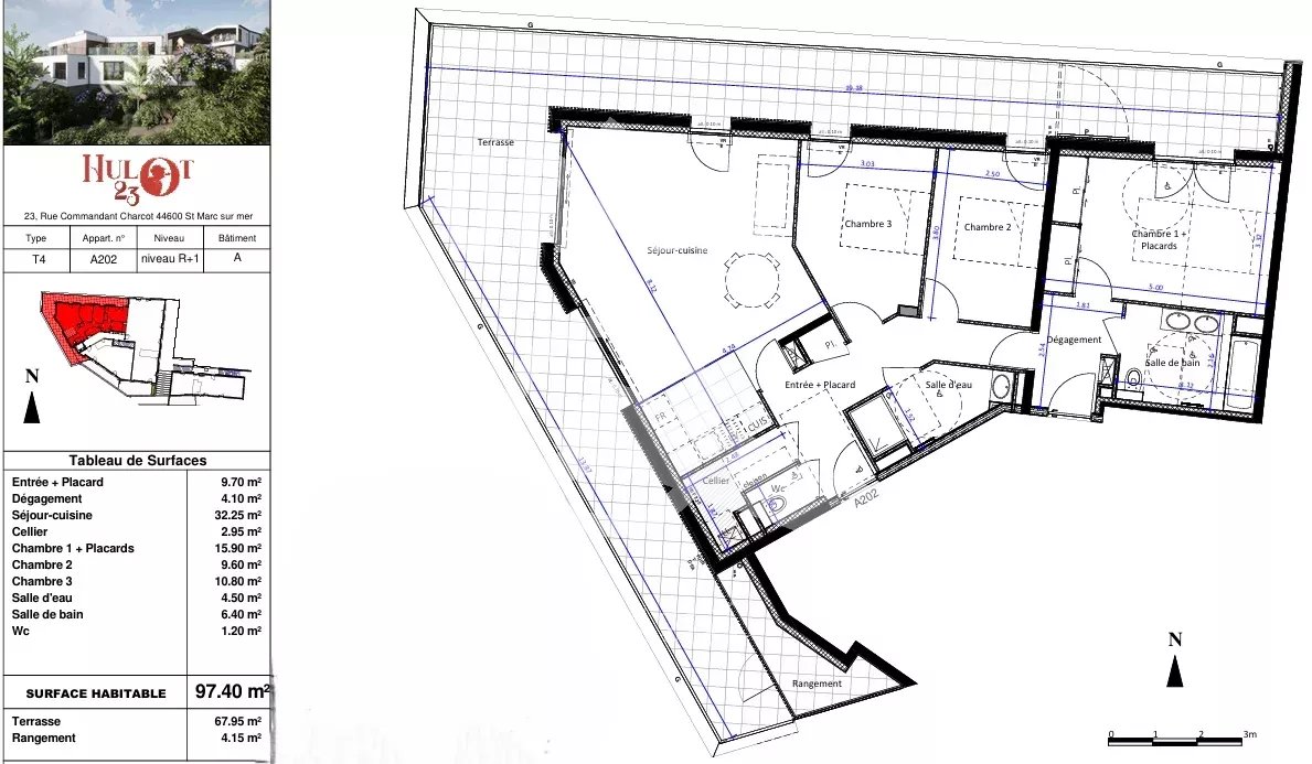 Découvrez HULOT23, une résidence avec ascenseur composée de 9 appartements allant du T2 au T5.