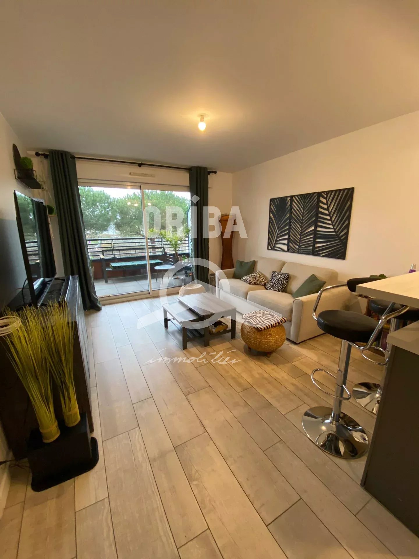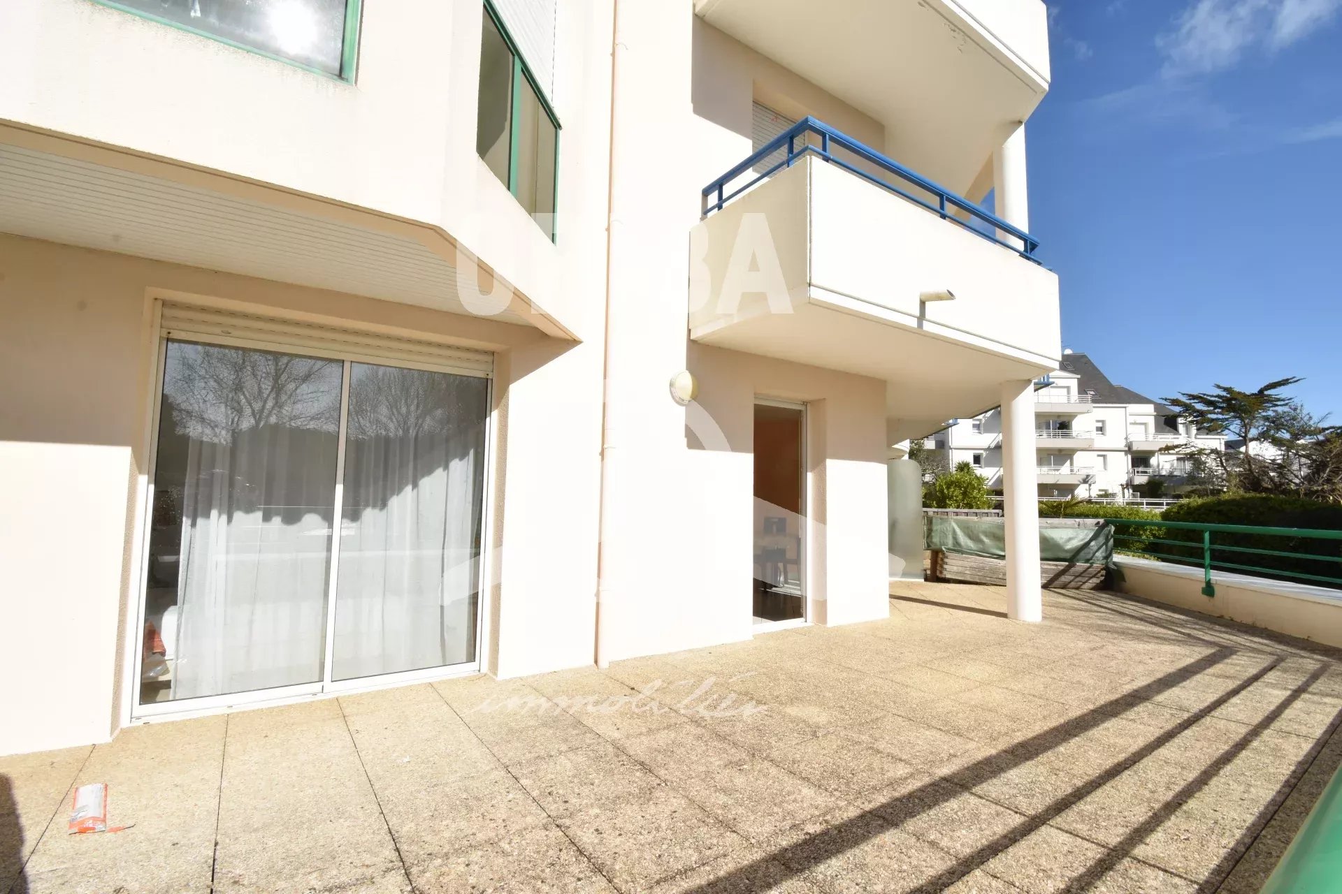 APPARTEMENT T2 de 48.62m² en rez de jardin clos avec parking: Salon- séjour double, cuisine indépendante, salle de bains avec wc, chambre avec placard. +33 6 09 35 52 92 - +33 2 51 10 84 93