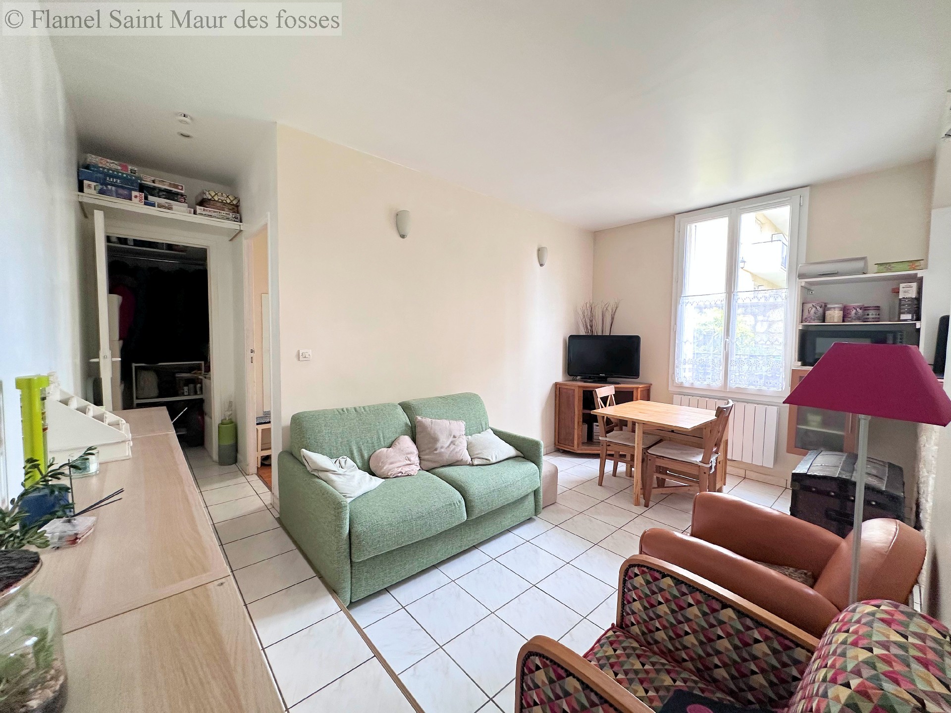 SAINT-MAUR La Pie, limite Adamville. Dans petite résidence, appartement d'une superficie de 24,58 m² Carrez. RDC : entrée, pièce principale, cuisine aménagée, w-c. Sous-sol (8 m²) aménagé et une salle d'eau. En bon état, avec double vitrage. Chauffa...