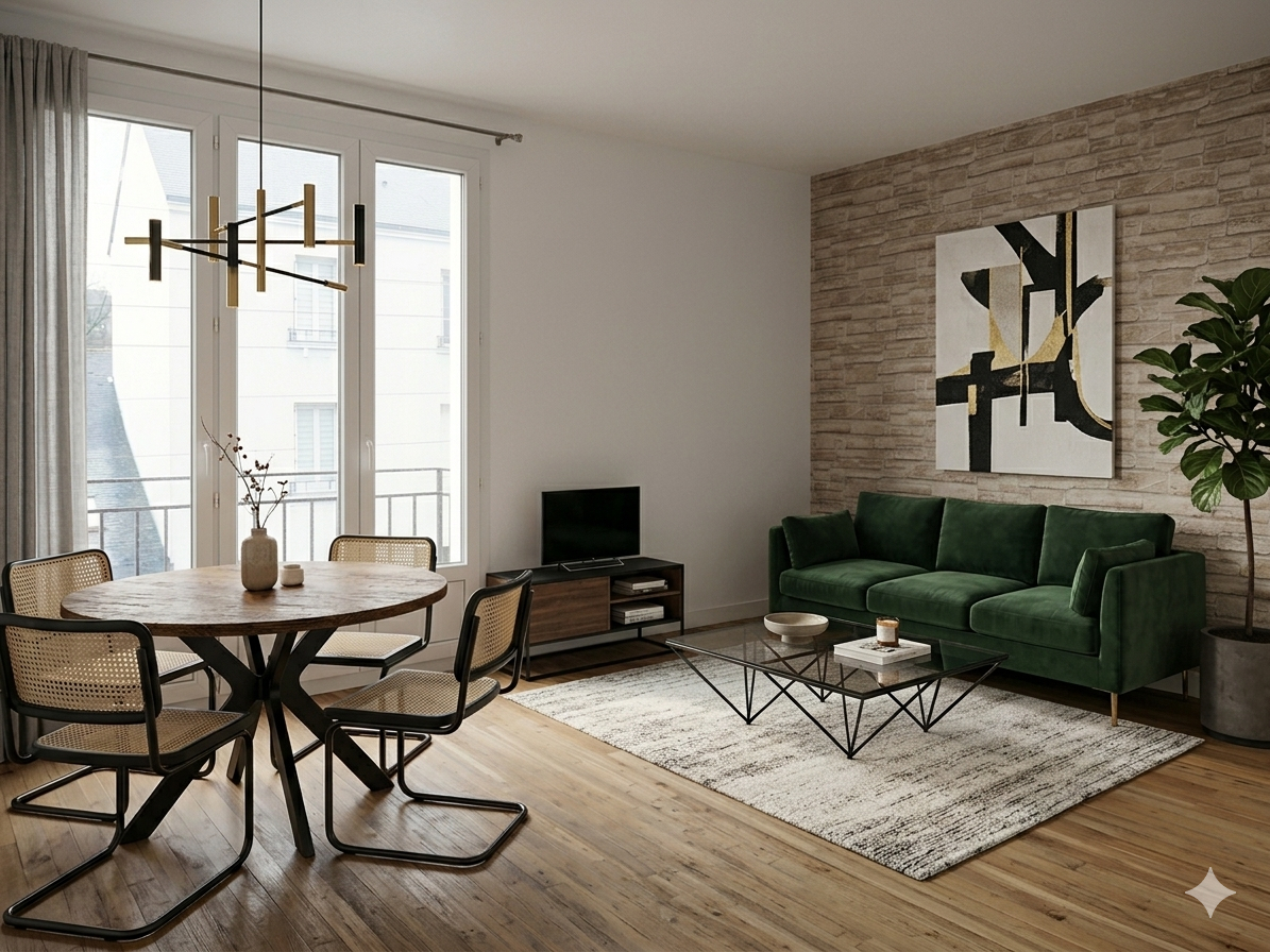 Appartement de type T3 en duplex, loué, situé sur Méan, proche de la gare, des chantiers de l'atlantique, au 1er étage d'une petite copropriété, offrant :