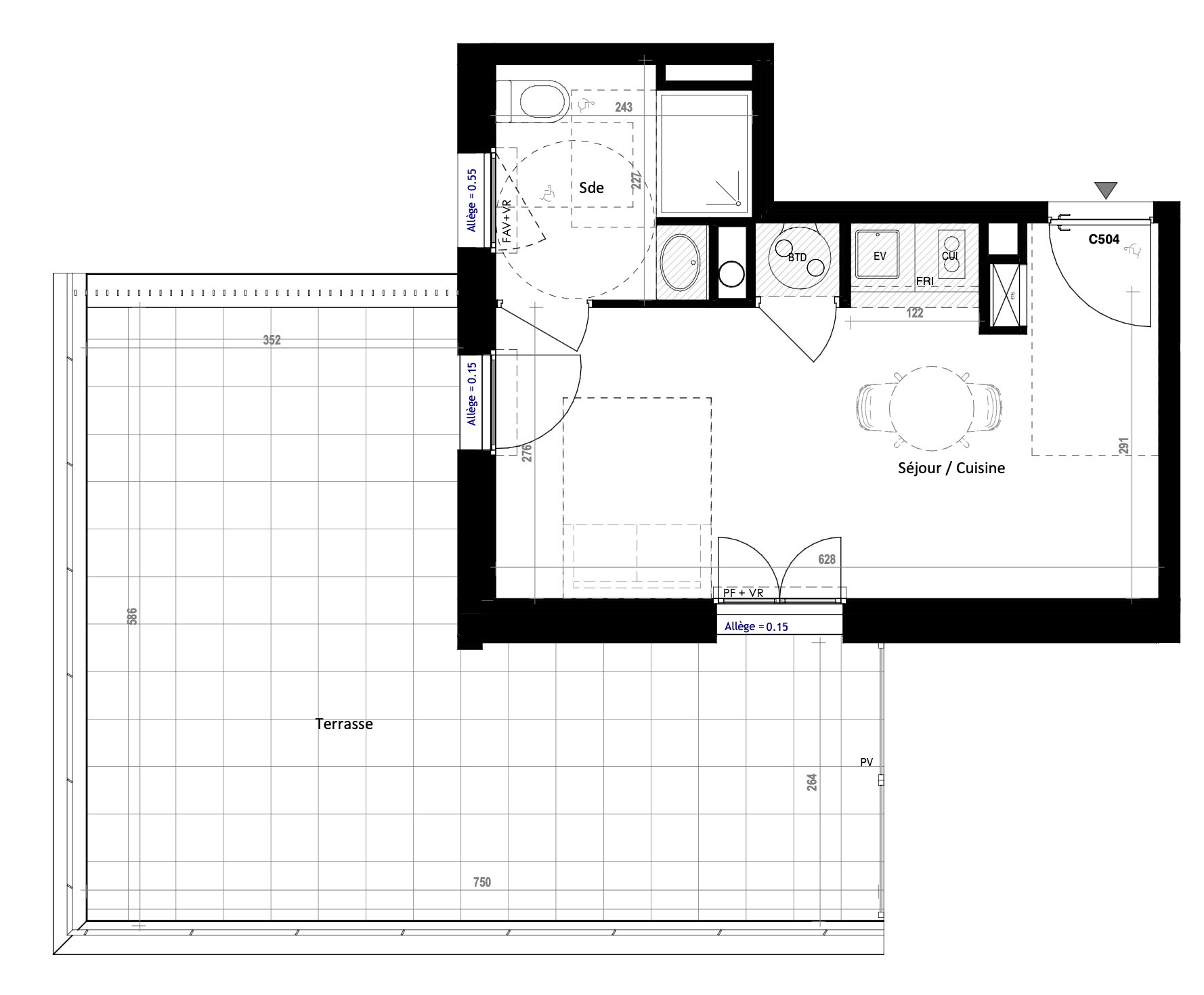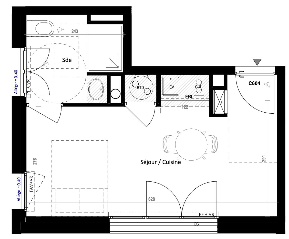 Il se compose d'une entrée, d'un séjour et de sa cuisine A/E, une salle d'eau avec WC ...