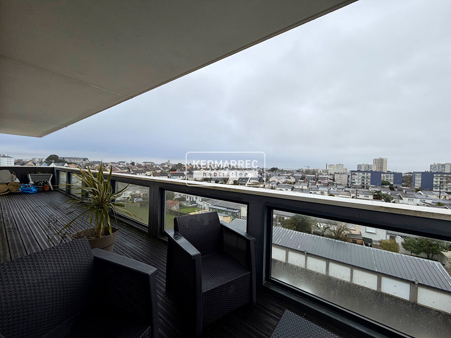 Saint Nazaire Kerlédé, proche commerces, plage et front de mer : bel appartement de 108 m2 situé en étage élevé. Il comprend : entrée avec placard, séjour salon sur balcon avec vue mer, cuisine aménagée, trois chambres avec balcon et vue dégagée sur l'est...