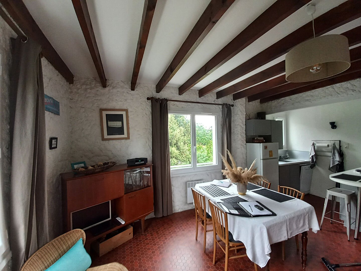 A l'étage, séjour-cuisine...