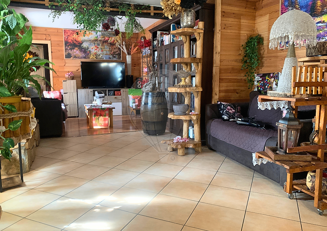 <p>Séjour lumineux avec cheminée bois, cuisine indépendante, deux g...
