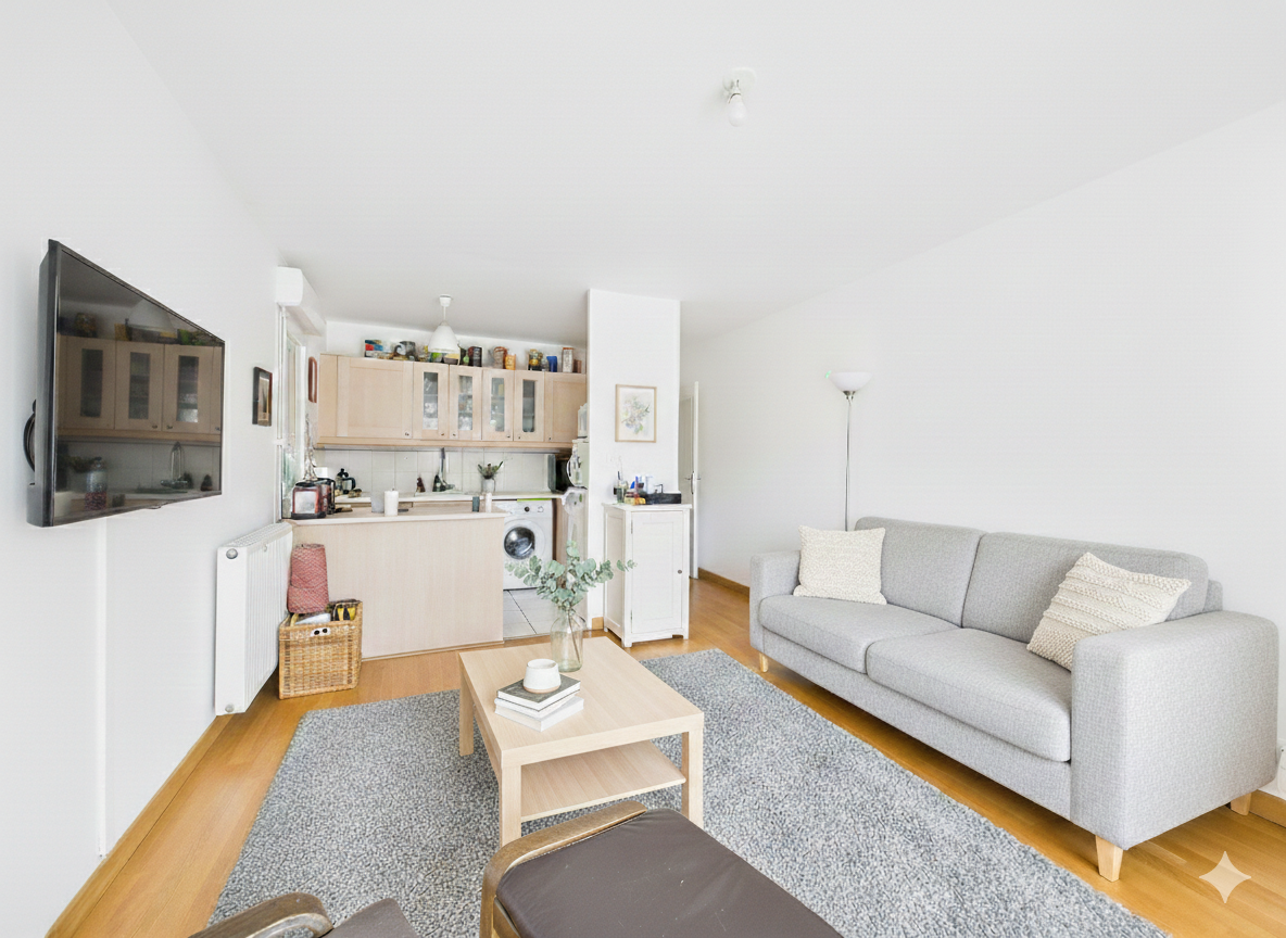 Cet appartement se compose d'un espace de vie ouvert très lumineux donnant sur balcon, 2 chambres sur parquet, salle de bain e...