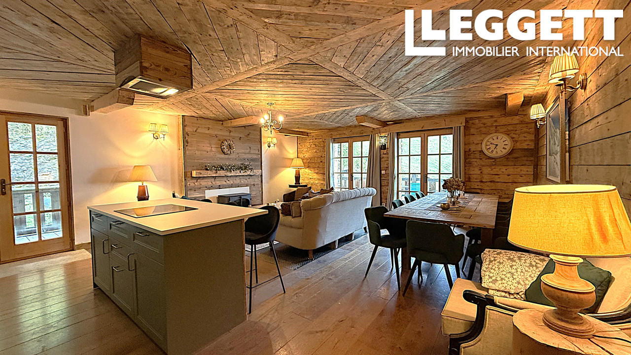 A37755JQB73 - Situé au coeur du quartier de la Bataillette à Sainte Foy Tarentaise, ce grand appartement traditionnel de style savoyard comprend un salon ouvert avec une cheminée en pierre et un poêle à bois, une cuisine entièrement équipée avec îlot, une sall...