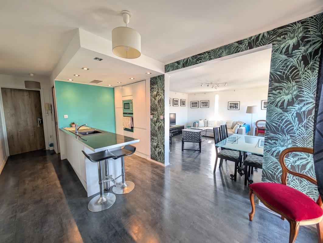 Dans une résidence sécurisée avec gardien, un appartement trois pièces de 57m² en étage avec ascenseur comprenant une entrée avec placards, un séjour lumineux, une cuisine ouverte sur la pièce aménagée et équipée, deux chambres, un dégagement avec placard, une...