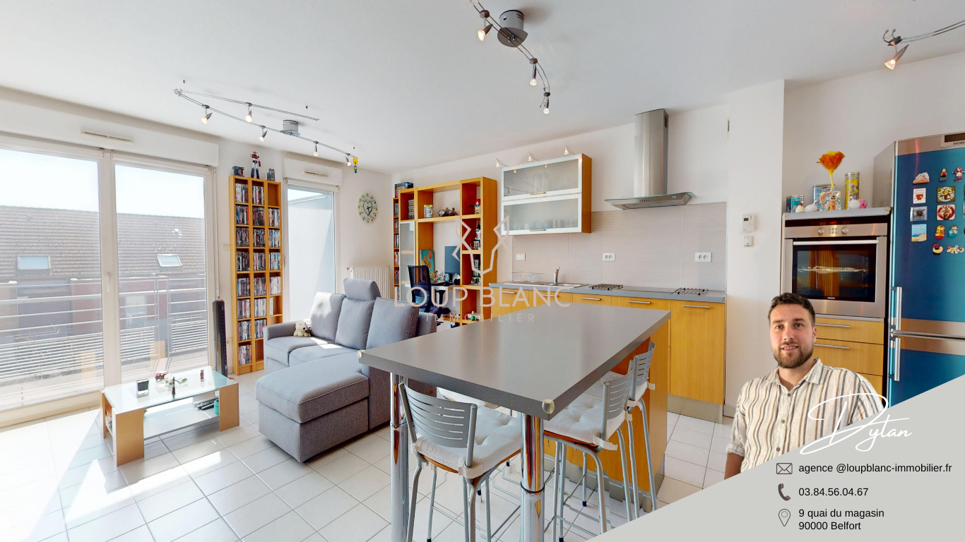 LOUP BLANC Immobilier BELFORT, vous propose à la vente, cet appartement en duplex, situé sur la commune de Vézelois, au 1er étage d'une copropriété moderne.