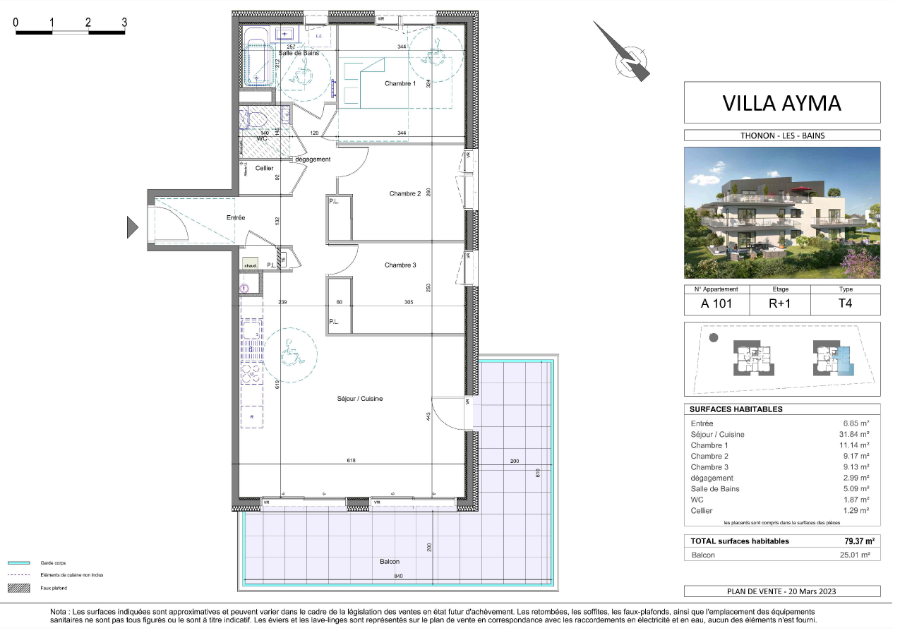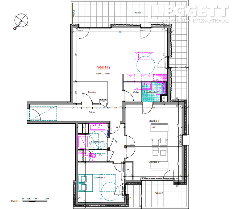 Dans quartier prisé de THONON, proche lac, école, bus, commerces,... dans nouvelle résidence, spacieux T4 de 108.61m² avec deux grands balcons. L'appartement se compose d'une entrée, séjour/salon/cuisine de 36m², 3 chambres , 2 salles d'eau, wc...