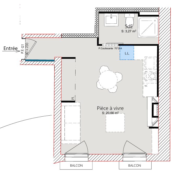Il se compose d'une entre desservant la pièce de vie avec sa kitchenette ouverte. La pièce de vie donne acc...