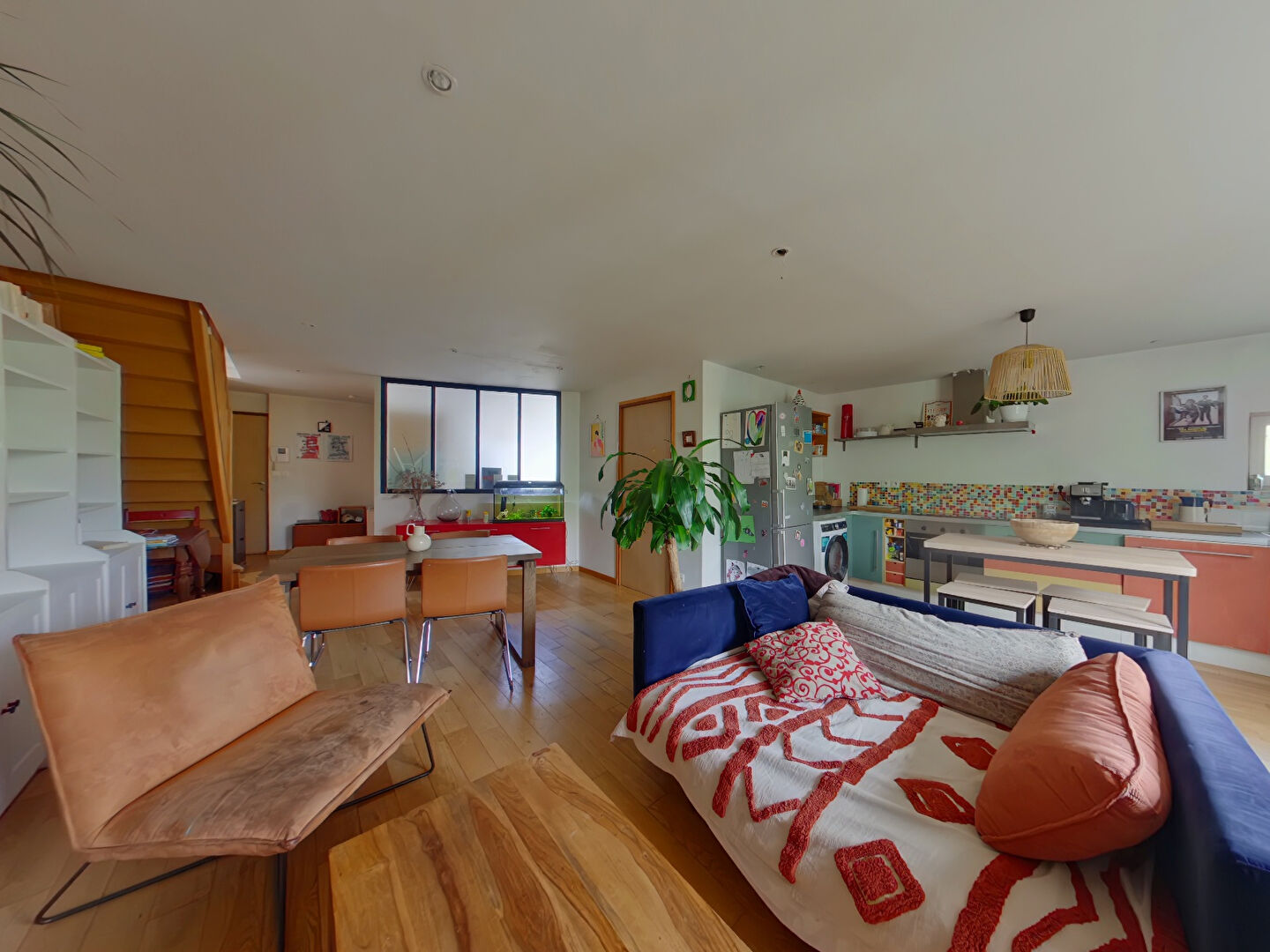 L'escalier qui mène à l'appartement est privatif. Au premier niveau, une très belle pièce lumineuse de 40m² avec cuisine ouverte. A c...