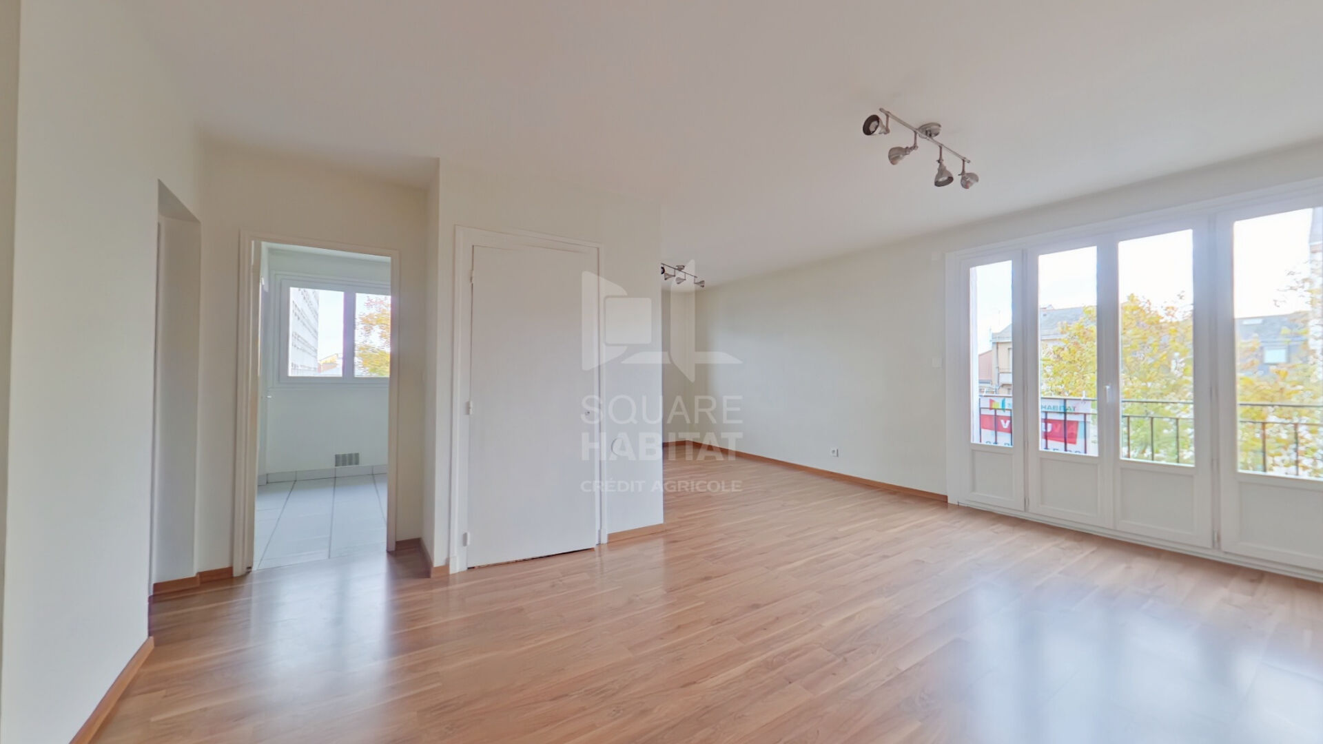 Une entrée desservant un séjour double exposé EST, une cuisine aménagée et séparée avec balcon exposé OUEST, deux cham...