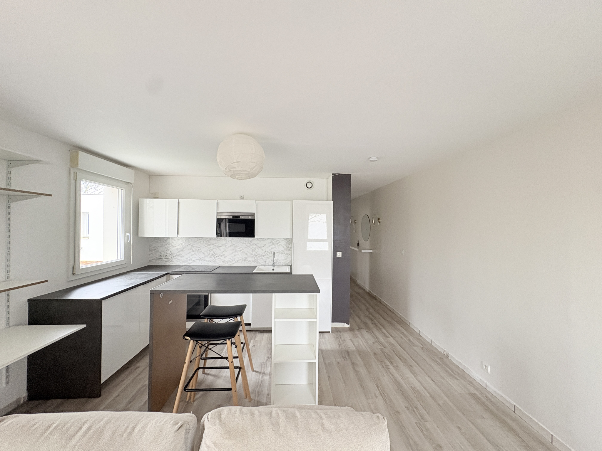un séjour lumineux avec cuisine ouverte