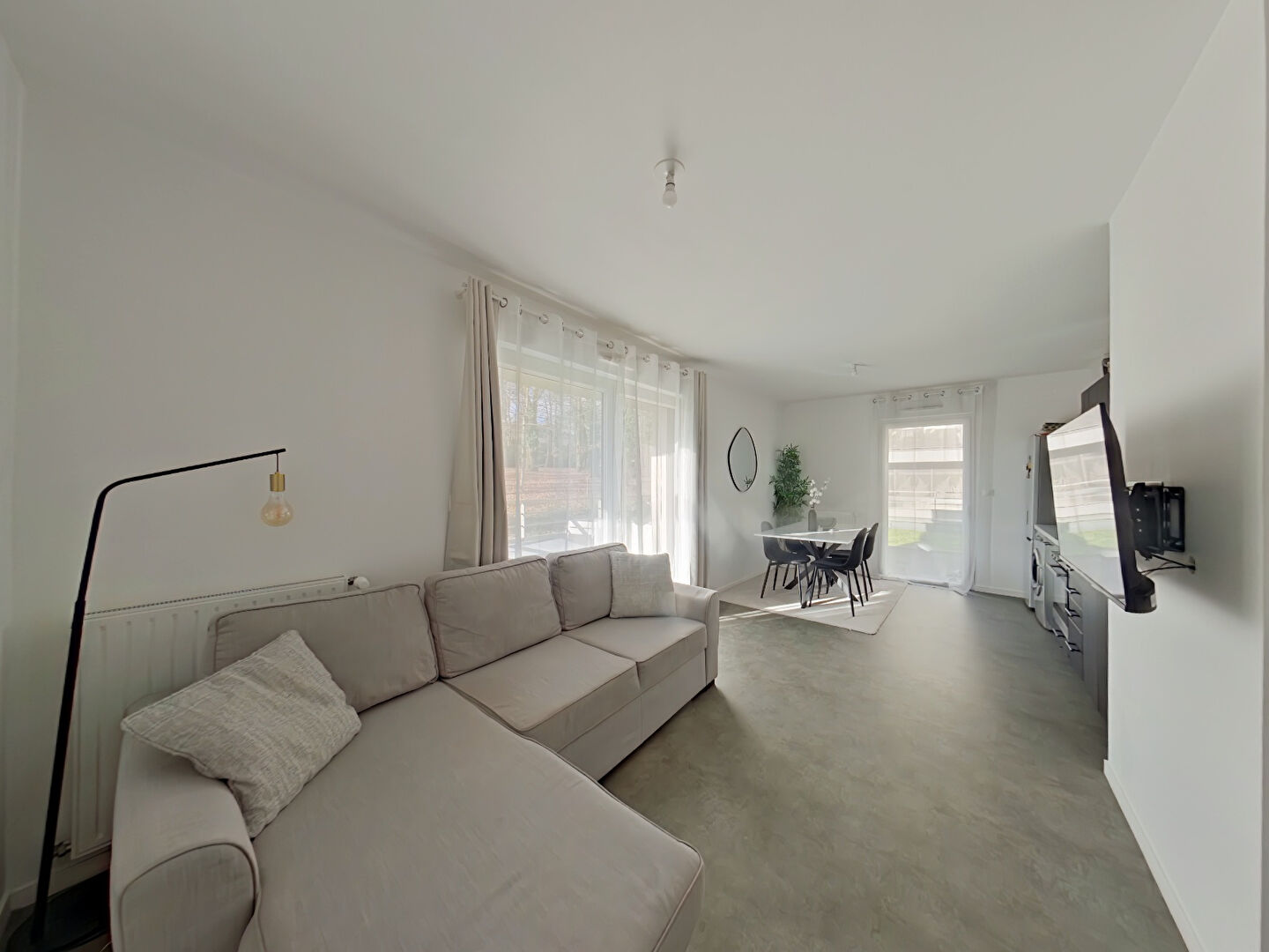 Au coeur du parc boisé, cet appartement en rez-de-jardin vous propose une belle pièce de vie avec cuisine ouver...
