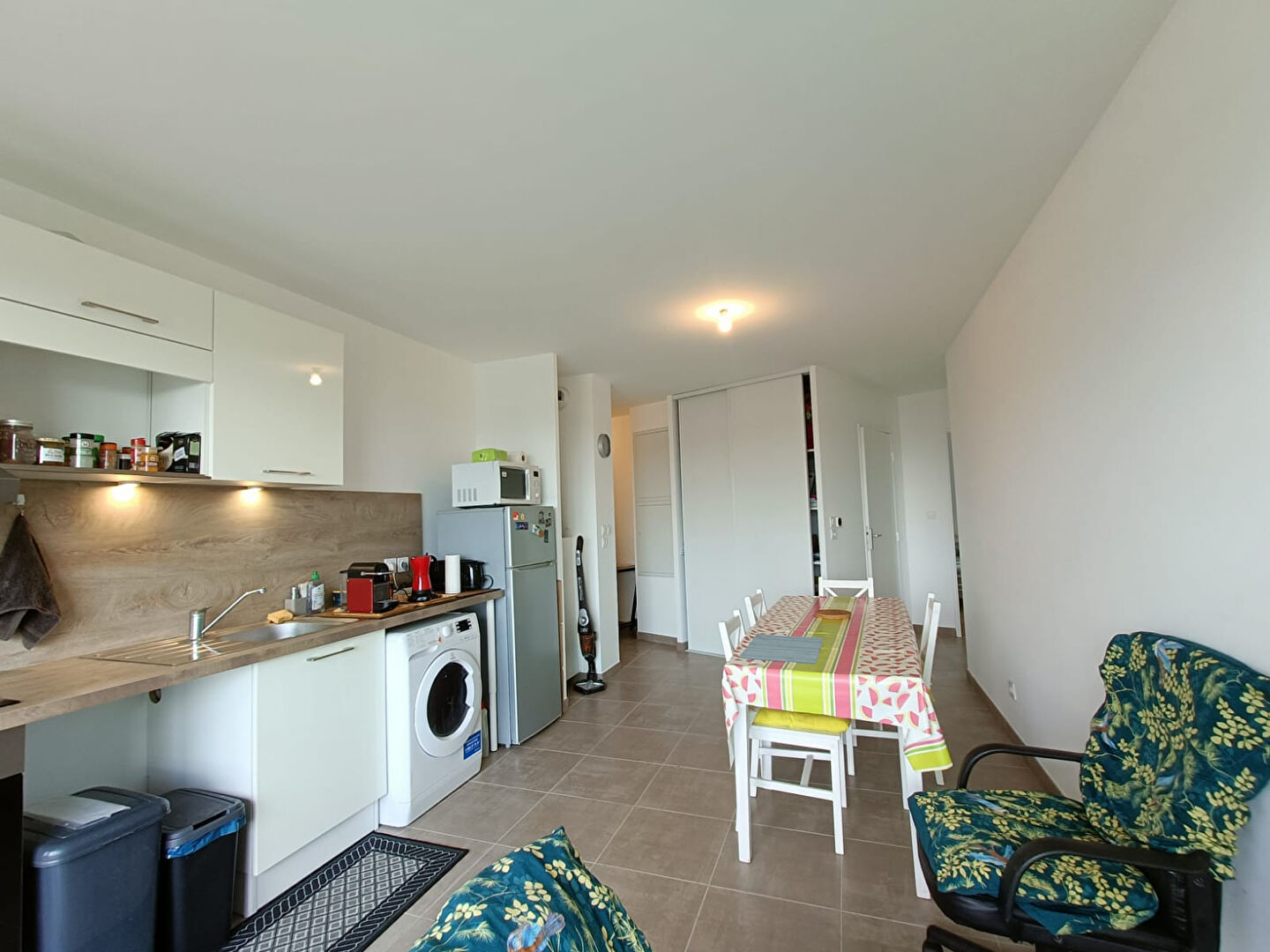 Une entrée avec placards, un séjour avec cui...