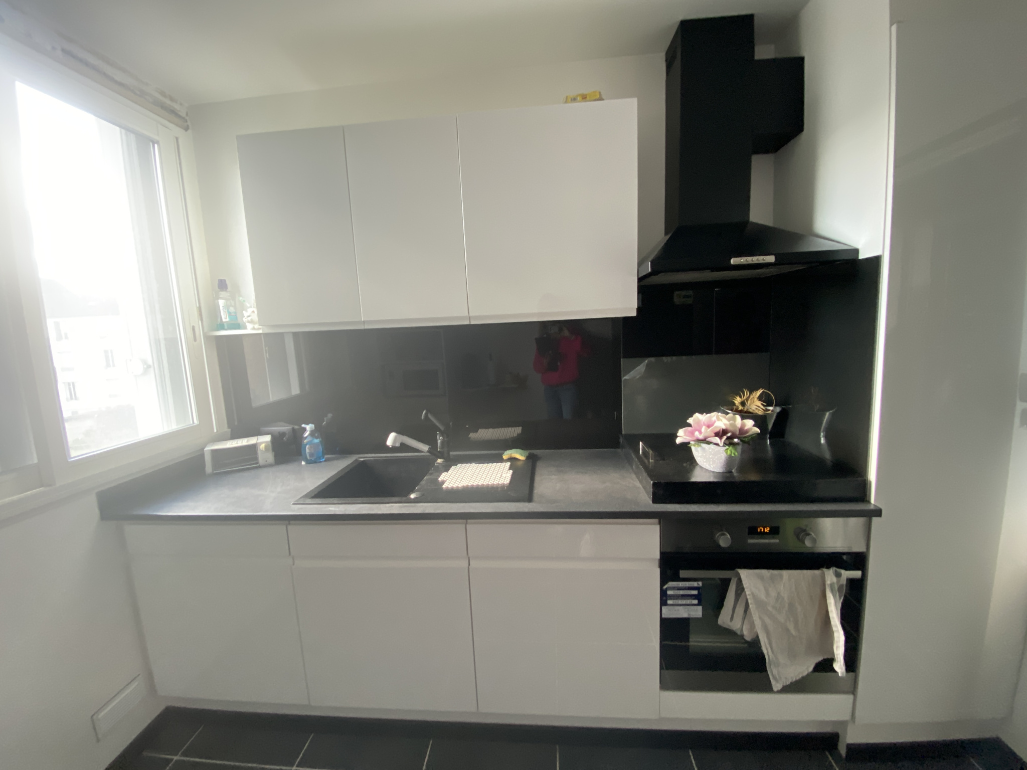 Entrée, séjour, chambre, cuisine aménagée, salle de douche, loggia.