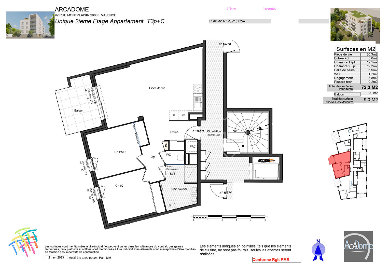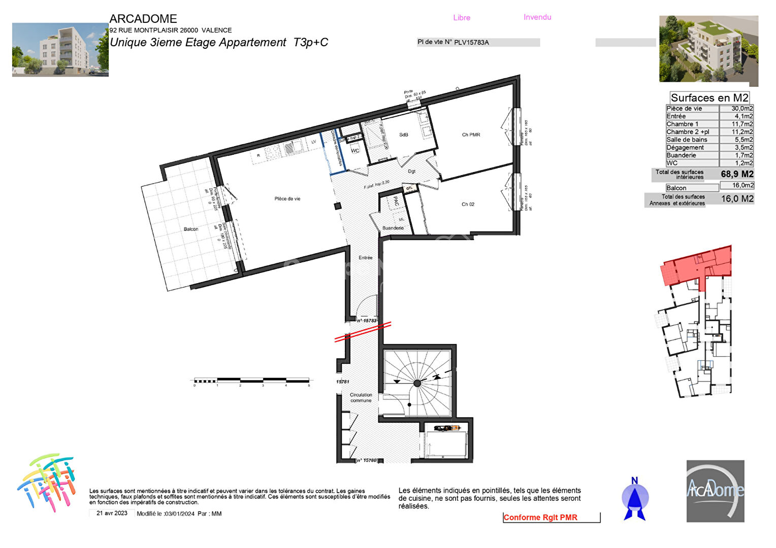 À vendre, bel appartement T3 de 67,64 m2 situé au troisième étage avec ascenseur d'une résidence récente, livrée en 2019, implantée dans un quartier recherché de Valence à proximité immédiate des commerces et des transports. Cet appartement se compose d...