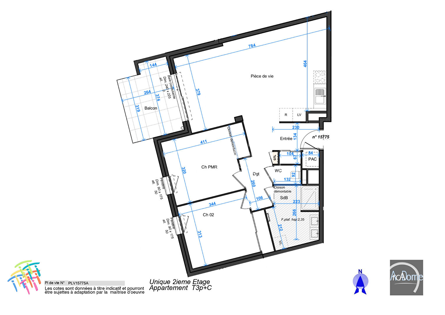 Comprenant une entrée, une pièce de vie, 2 chambres, 1 salle de bains, 1 balcon de 16 m2 environ. Chauffage par pompe à chaleur.