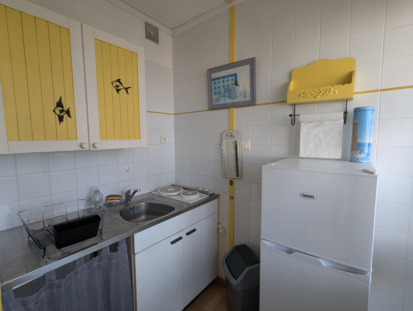 Au 5ème étage et dernier étage d'une résidence avec ascenseur, les pieds dans l'eau, cette studette entièrement rénovée se compose d'une pièce de vie avec kitchenette entièrement équipée avec coin nuit et une salle d'eau avec wc.