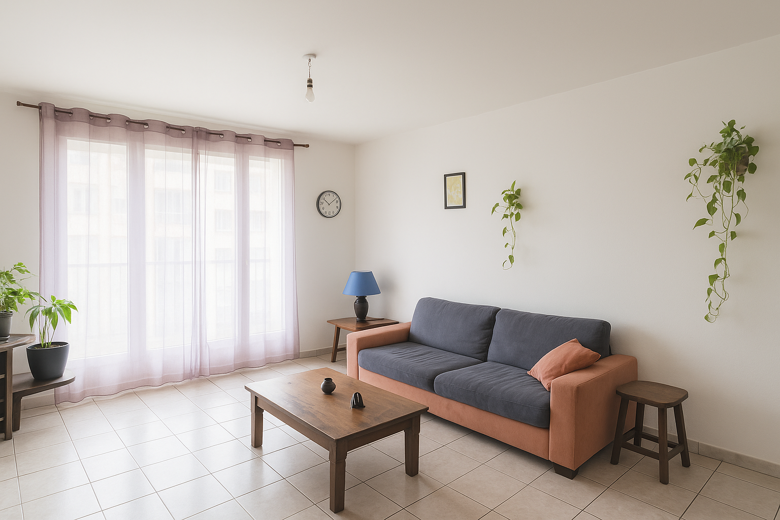 Il se compose de : une entrée, un grand salon séjour avec placards, une cuisine équipée, une chambre, un WC,...