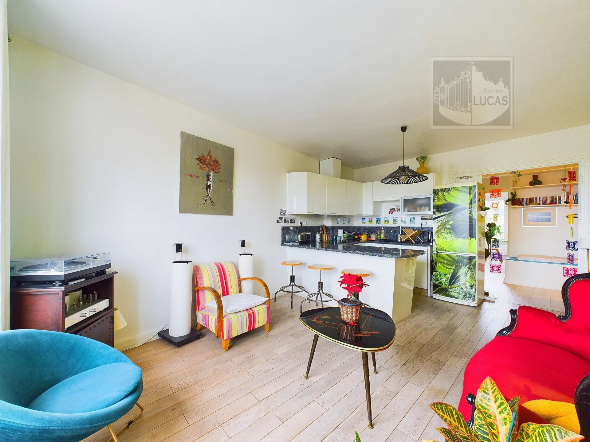 Dans un petit immeuble bénéficiant d'un jardin collectif en plein cœur du village, appartement 4 pièces de 76.03 m² en bon état, calme et lumineux. Comprenant : entrée avec placard distribuant un salon avec cuisine américaine, 3 chambres, salle d'eau...