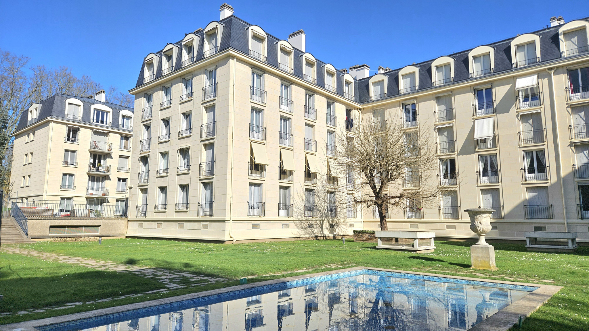 VERSAILLES Porchefontaine / Avenue de Paris - Les Octrois, RARE, très bien situé au calme et sur le bassin d'ornement d'une résidence appréciée et sécurisée, bel appartement à rafraichir, extrêmement lumineux, bénéficiant d'une double exposition...