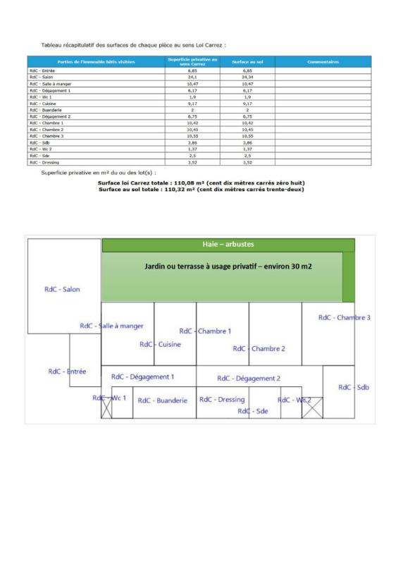 Entrée, cuisine séparée, séjour (25 m2), dégagement, WC séparé, deux chambres (9,5 m2 et 11,5 m2), dressing et salle de ...
