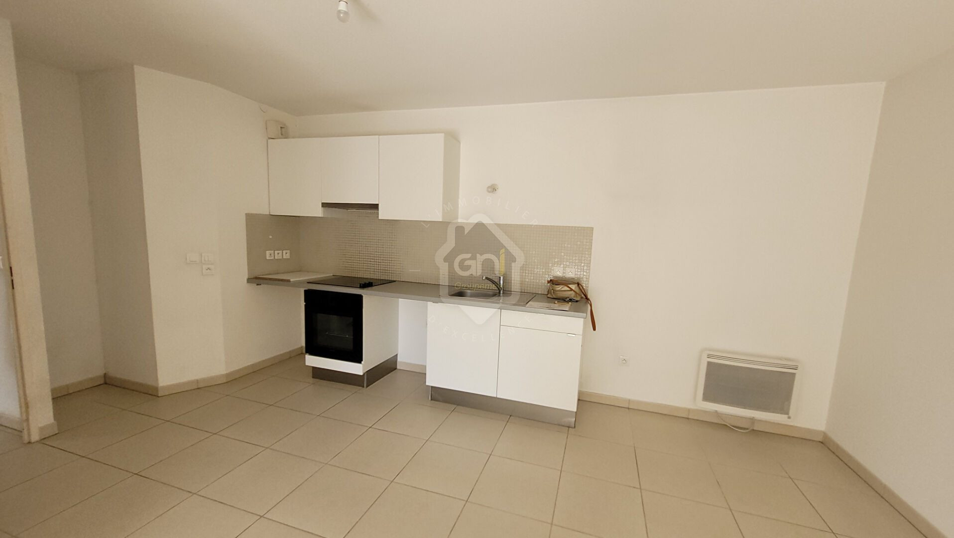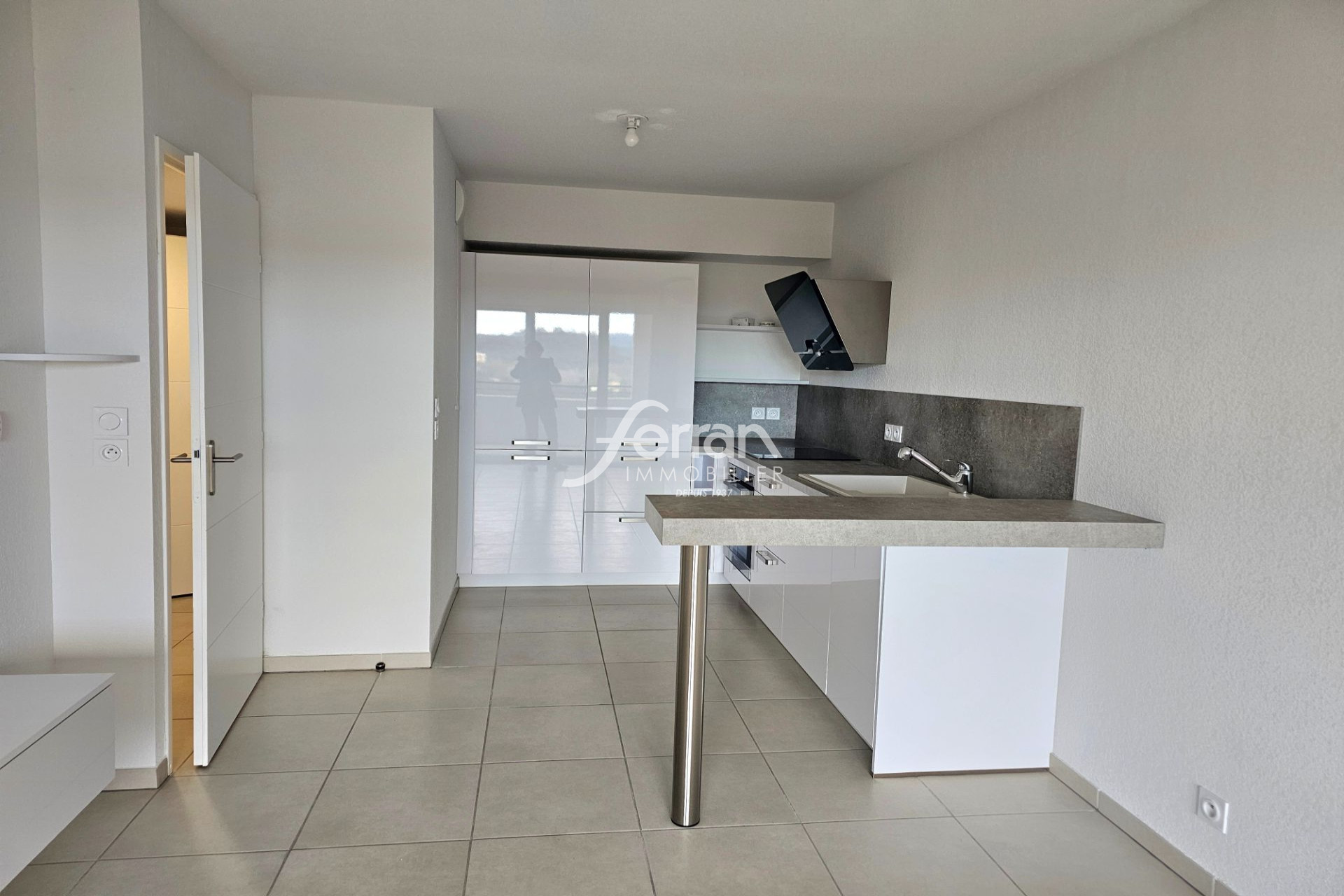 Composé d'une cuisine équipée ouverte sur un séjour exposé Sud et d'une salle de bain avec WC.