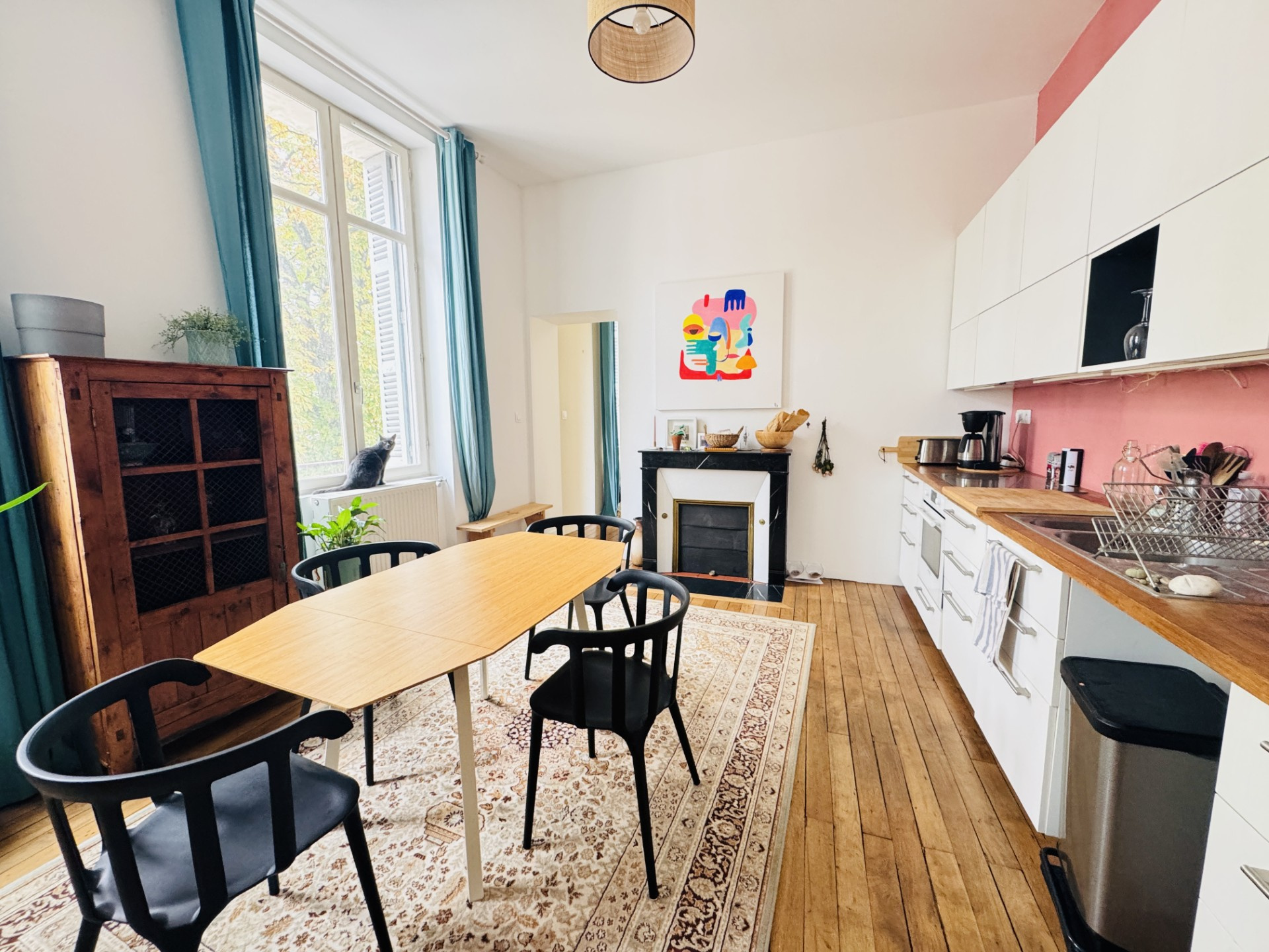 VENTE d'un appartement Type 4 Quartier Blossac - Poitiers - Blossac - QUARTIER DE BLOSSAC - Superbe appartement Type 4 de 128 m² comprenant Entrée, vaste séjour/salon avec cuisine entièrement aménagée et équipée, salle d'eau/buanderie, WC, à l'é...