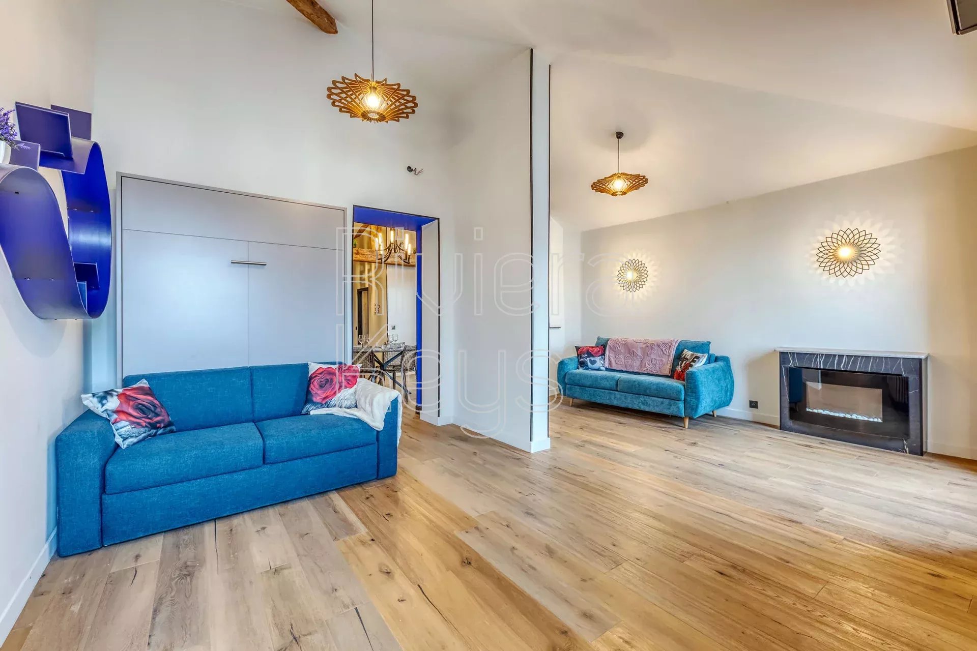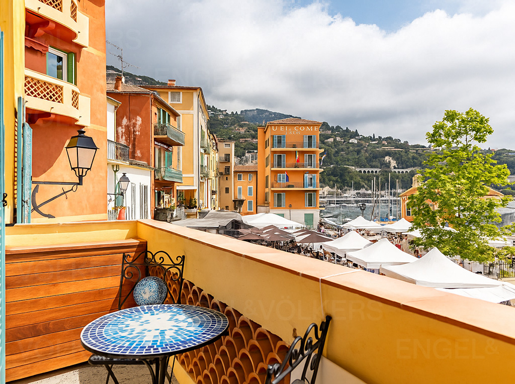 Bénéficiant d'un emplacement de premier choix, au coeur du village historique de Villefranche-sur-Mer, face aux bateaux, découvrez cet appartement 2 pièces en dernier étage d'un immeuble datant du début 18ème. Il est entièrement rénové avec des prest...