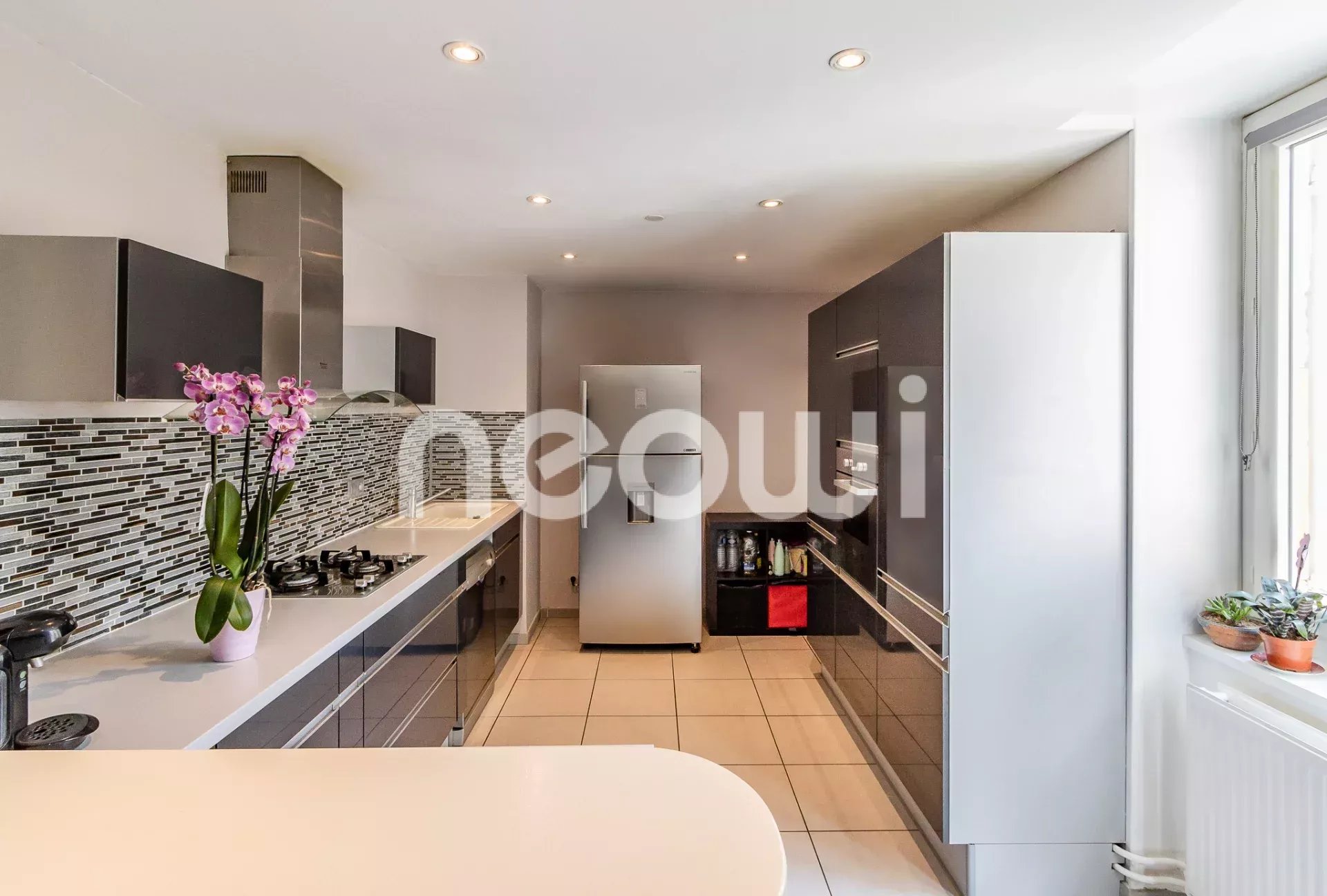 Au 1er étage de cette petite copropriété, l'entrée dessert une spacieuse et contemporaine pièce à vivre de 36 m² avec cuisine ouverte de 9m².