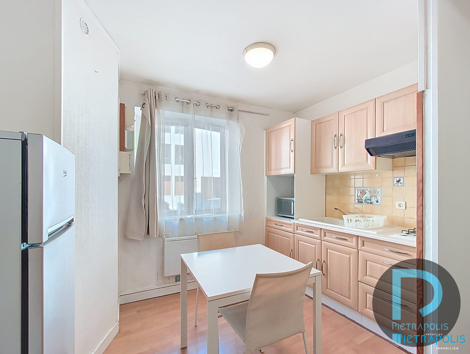 Ce T2 comprend un séjour de 21.63 m² avec cuisine équipée, une chambre, une salle de bain avec WC.