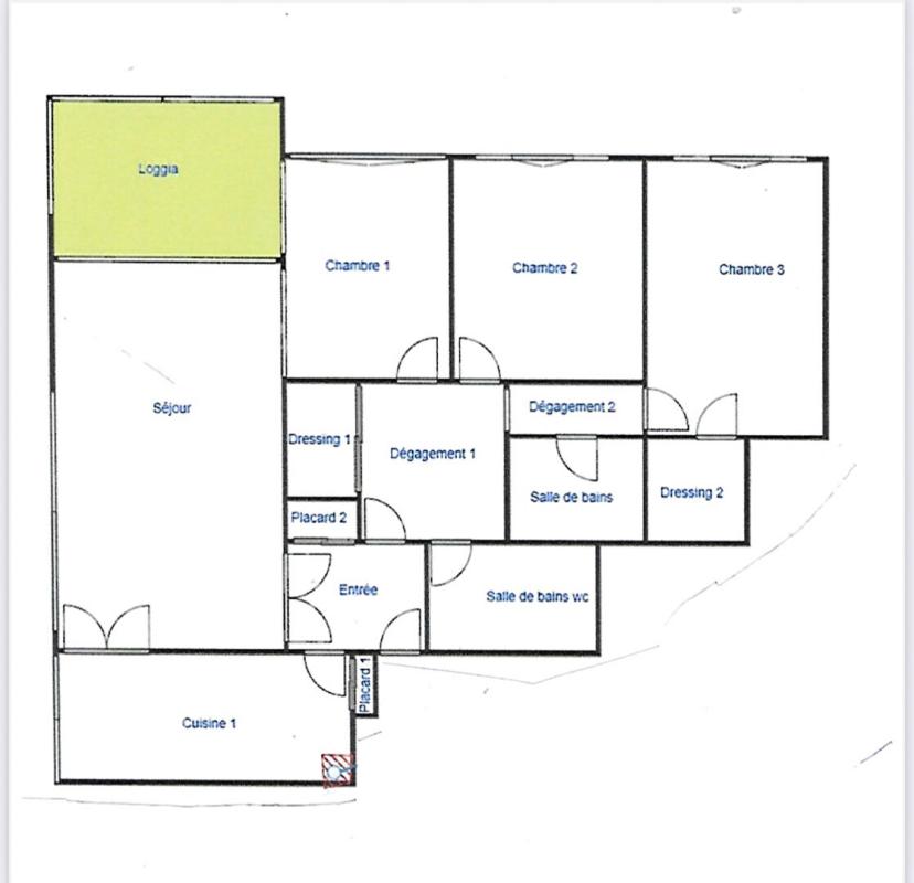 Il comprend : une entrée, une cuisine aménagée, un séjour double donnant accès à un balcon, un dégagement avec placards, un dressing, une chambre, une salle de bains.