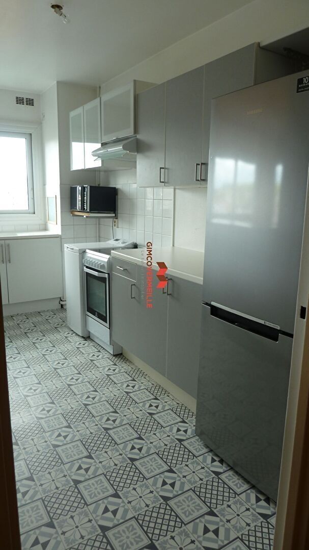 Appartement T3 situé au 2ème étage, comprenant séjour, cuisine aménagée, couloir desservant deux chambres, salle de bains et WC.