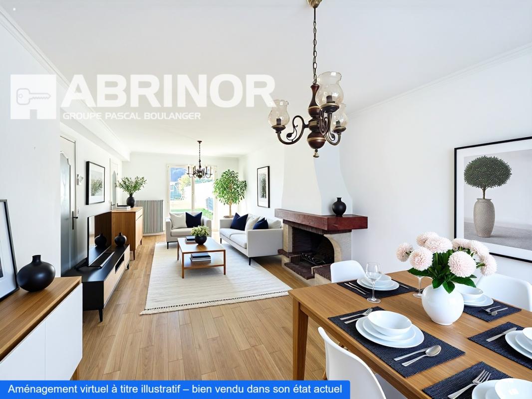 bâtie sur un terrain de 228 m². Elle offre un salon / salle à manger avec poêle à bois ouvert sur une
