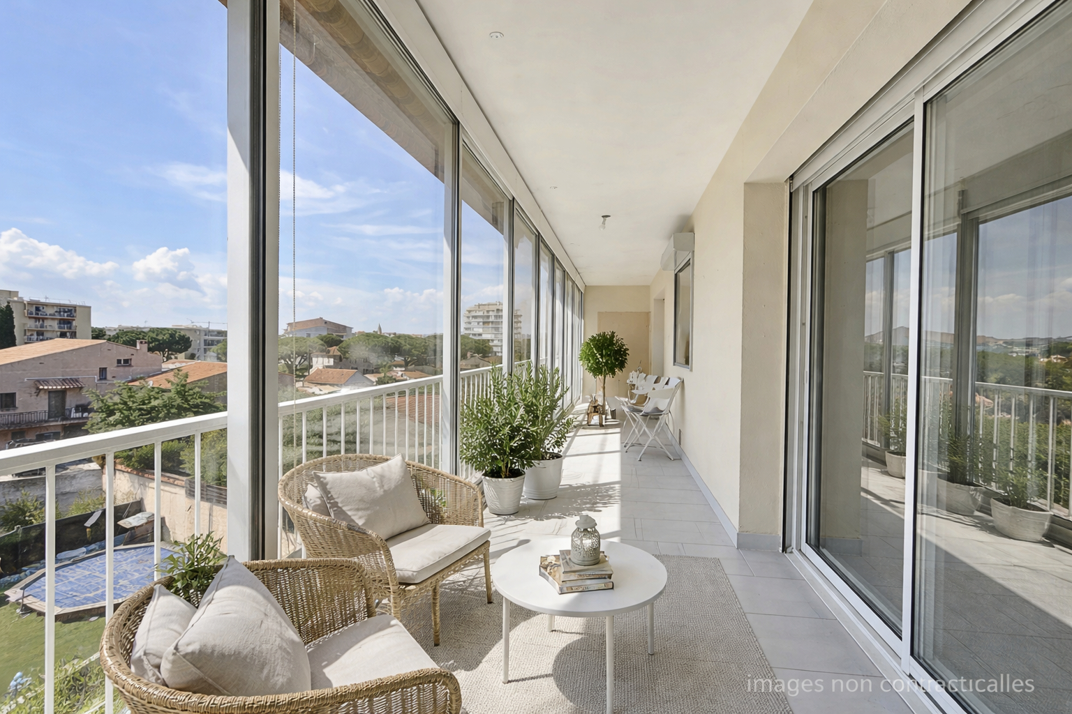 Ce superbe appartement séduit par sa vue panoramique imprenable sur le massif de l'Estérel, visible depuis une profonde terrasse idéalement exposée, véritable prolongement de l'espace de vie.